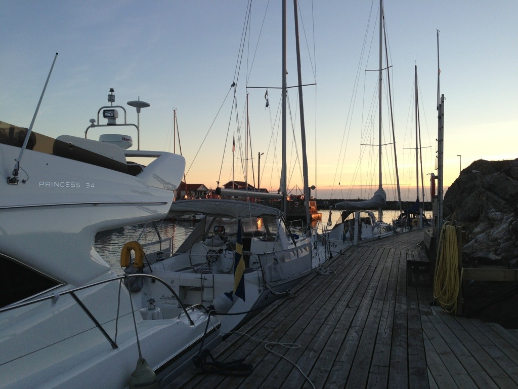 Hakefjorden låg stilla och glittrade i kvällssolen. Marstrand var planen men det blev Dyrön istället. Extra kul i och med att min kollega låg där redan och vi nu fick se deras nya fina båt.