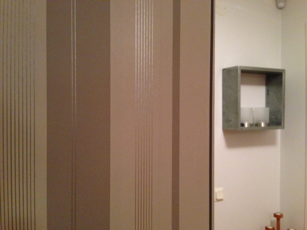 Ränderna hamnade där de skulle göra och när jag kom till slutet av sista väggen var även den tapetvåden rak. För att verkligen ställa krav på rakhet hamnade en rand precis kant i kant med väggkanten. Men, rakt blev det. Kanske att jag skulle karriärväxla… Eller inte.