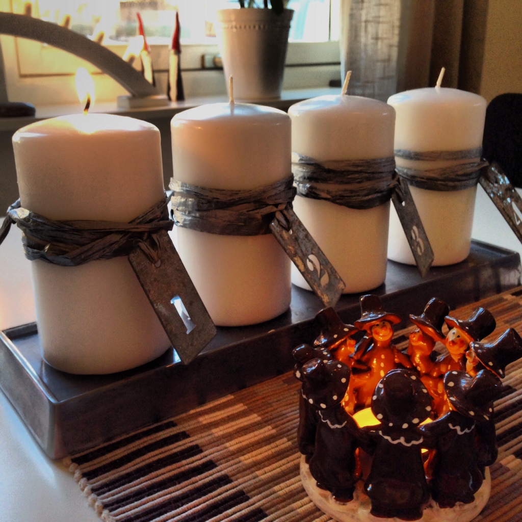 Det var nog bara snön som fattades egentligen. Annars har vi lyckats få till det mesta med lite jultouch idag. Frukost med adventsversläsning och datumljus. Tomtelatte efter en tur till torget (som var skrämmande öde). Julbordspremiär med allt och som avslutning adventsmys i soffan. Just det ja…. Vi drack vatten till adventsmyset, inte glögg. Den salta och feta maten verkade kräva det.