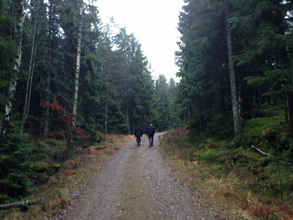 Idag blev det nästan inte ens ljust ute. Efter Indoor-passet kändes det som att en mysdag i soffan hade varit det bästa. Ändå åkte vi till Svartedalen för en promenad. I regnet…. För regnade gjorde det hela tiden. Maken påstod att det höll upp ett tag men jag märkte aldrig det. Tur att det inte var kallt.