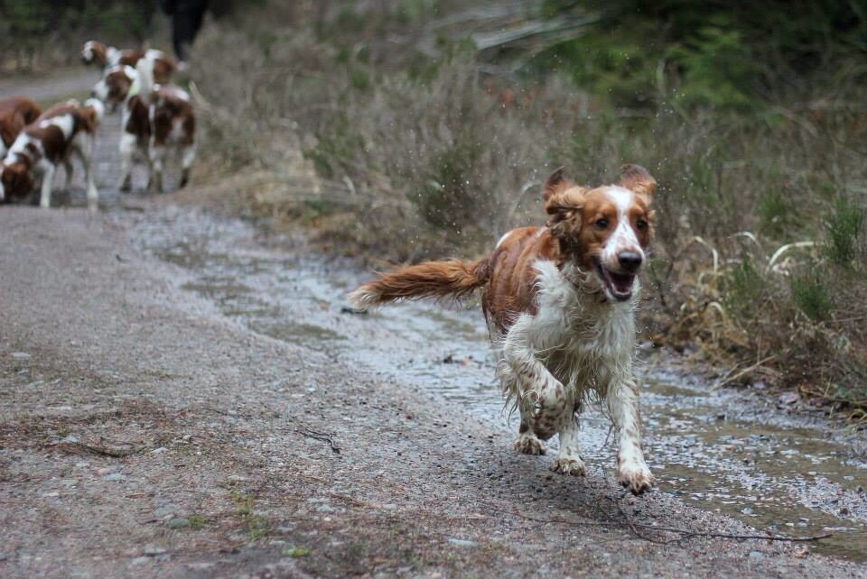 Maken hade lämnat ved vid vindskyddet redan igår för att slippa bära den idag. Meteorologerna hade livat vårvärme men den hade inte riktigt hittat hut så värmen från elden när vi grillade korv var riktigt skön. Den och värmen inombords av att se så många glada hundar ”rinna” fram genom skogen. Och gladast var nog Sintra.