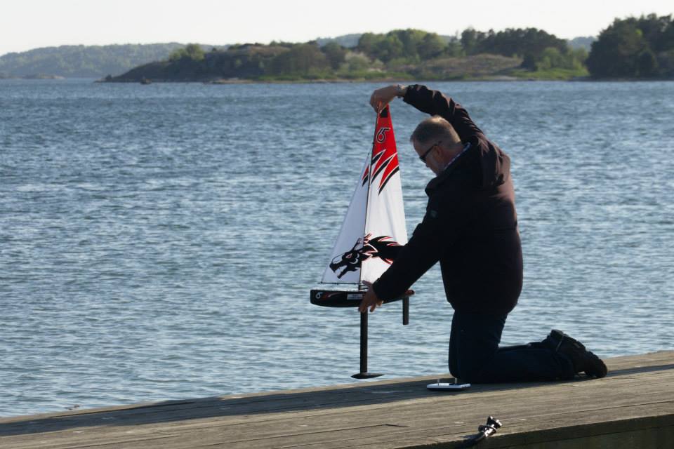 Han presentades nämligen med segelbåt när han fyllde år. Ja, en radiostyrd sådan alltså. En ”riktig” har vi ju redan. Det var just en Dragonforce 65 han fick och tydligen är det en sådan man ska ha just nu. SM ska visst hållas här i Stenungsund i höst och det skulle inte förvåna mig ett dugg om maken är med och seglar där för oj vad det gick igår när han tränade.