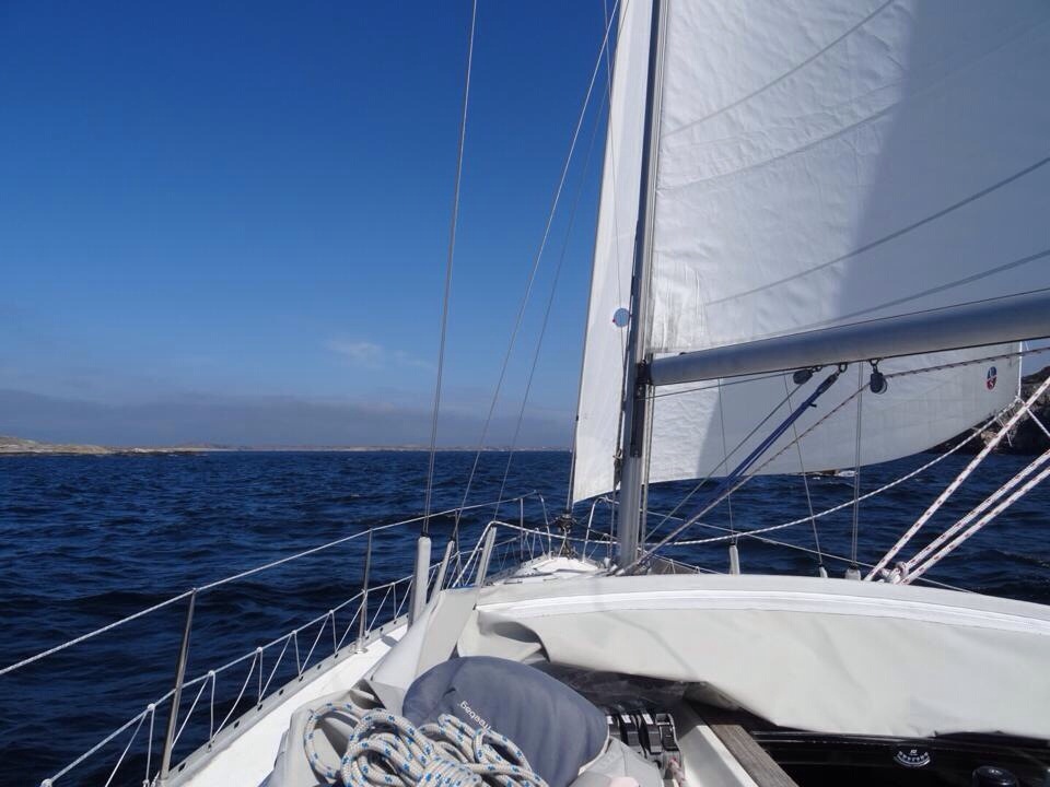 Att kunna segla i farlederna gör försäsongen så speciell. Sommartid är det nästan omöjligt. Även om det finns regler är det få som verkar kunna dem. Nu fick vi möjlighet att rulla ut våra segel redan när vi lade loss och först i närheten av Bohus Malmön rullade vi in dem. Fantastisk segling i strålande sol.