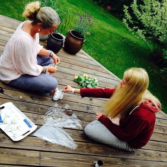 En av de bästa stunderna idag var nog ändå när yngsta dottern och jag pysslade med blommorna inför morgondagen. Tillsammans. På altanen. Hon och jag…
