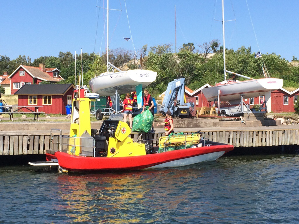 Det blåser rätt bra så när sjöräddningen dök upp i hamnen var det inte utan att vi funderade lite över om någon behövde assistans. Det visade sig att de var här för att hämta tomburkar. Som den ideella förening de är, är varje skänkt krona värdefull. Ett sätt för dem att samla in pengar är just tomburkar. Förra året fick de in 18 miljoner burkar som finansierade ”panta-mera-båten” Grundidén är att samla in de utländska burkar som inte ger pant i Sverige även om även svenska burkar bidrar.
