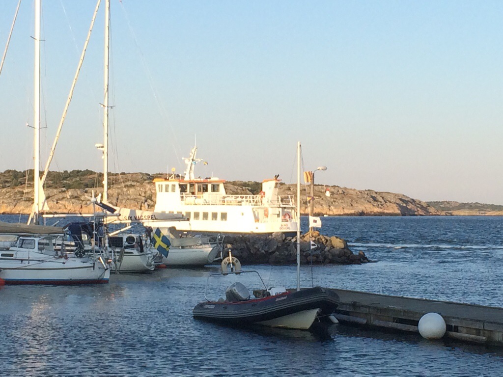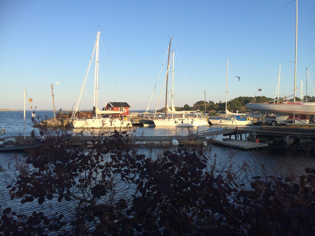 Efter en dag med massor av roligt blev det tomt när vi hade vinkat av alla och Buröfärjan. Klockan var halv nio och termometern visade fortfarande på 25 grader.