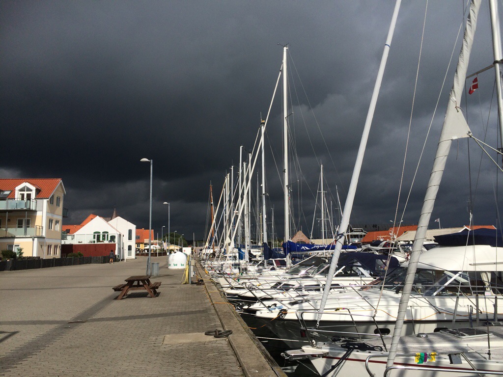När vi vaknade och tittade norrut var det svart. Sådär svart att man inte ens tänkte tanken på att gå utanför pirarna och styra mot Skagen.