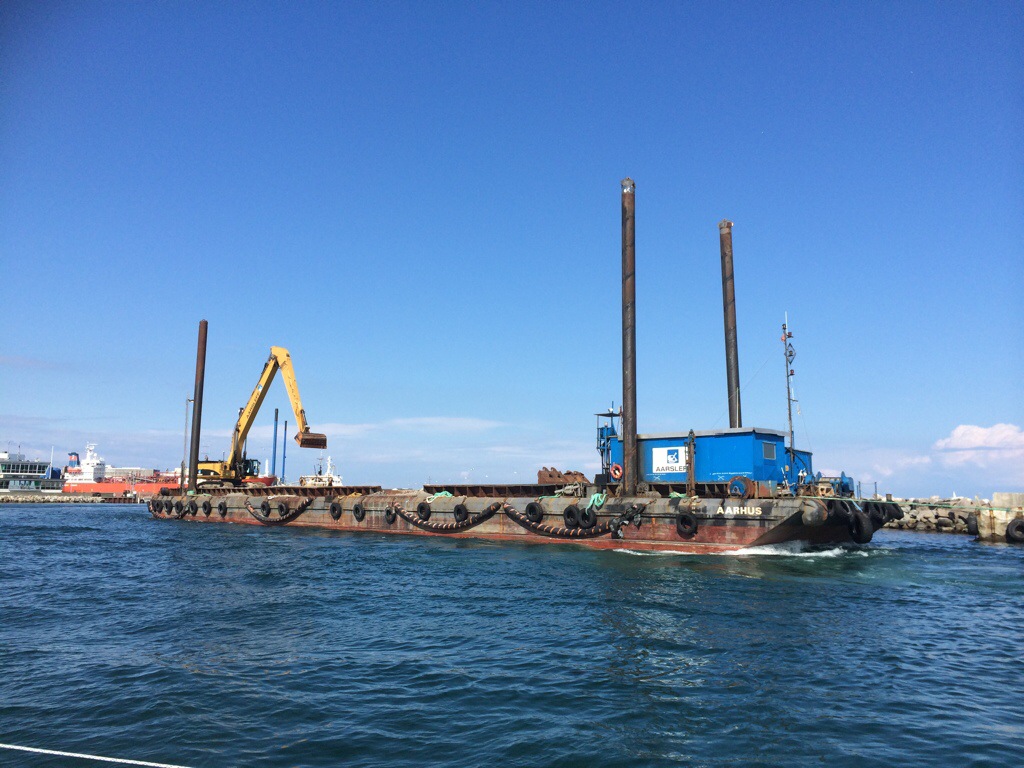 Innanför pirarna i Skagen mötte vi en lite annorlunda ”båt”. Kan säga att vi gjorde allt vi kunde för att inte komma i dess väg. Dessutom bogserades den av den minsta bogserbåt jag någonsin sett…