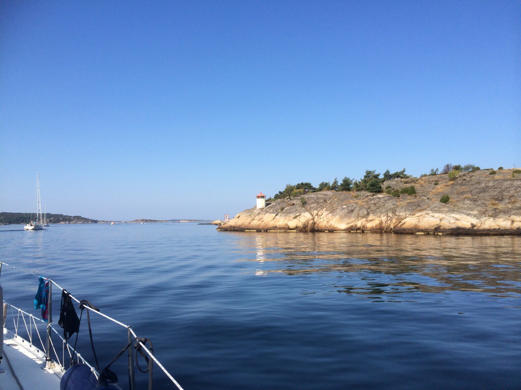 Kyrkosund på Syd Koster var målet men halvvägs fick vi dra stopp på motorn (hade gärna seglat men det blåser ju inget). Vi drog stopp för att bada. Hur ofta kan man bada i 25-gradigt vatten där det är 200 meter djupt i Sverige….? Helt galet! Och ljuvligt!