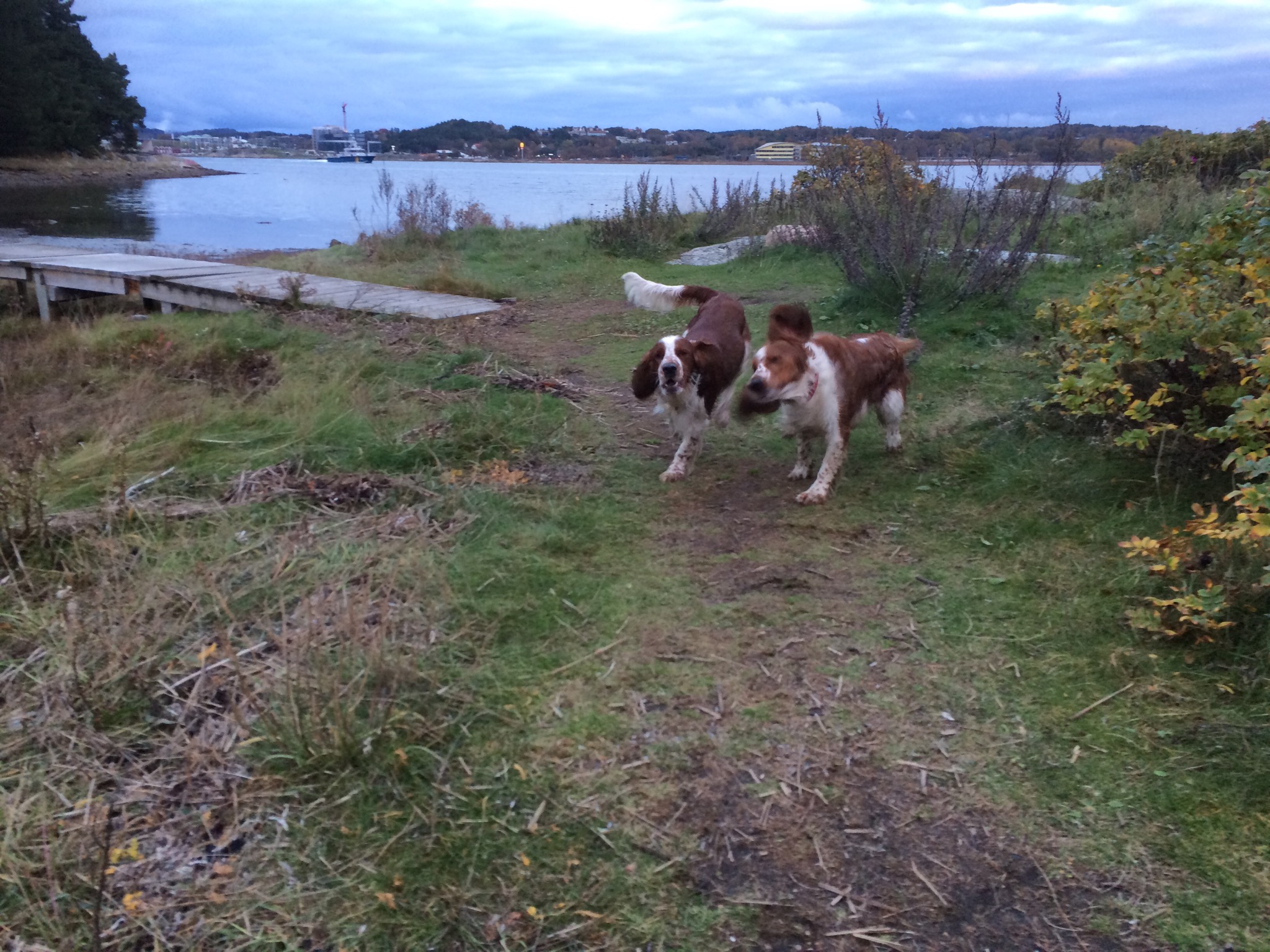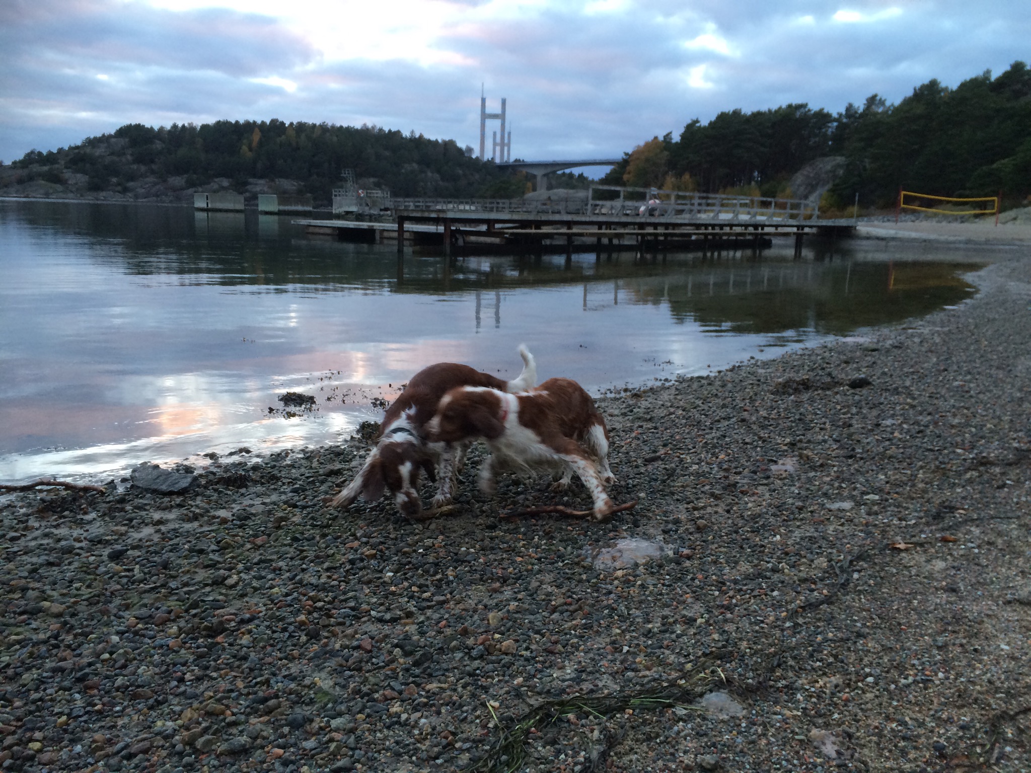 Det var lika stor glädje hos både Sintra och Charlie som vanligt och de hann med allt. Springa efter fåglar, skutta i högt gräs, simma efter pinnar och busa sådär så att jag blir glad i hela kroppen.