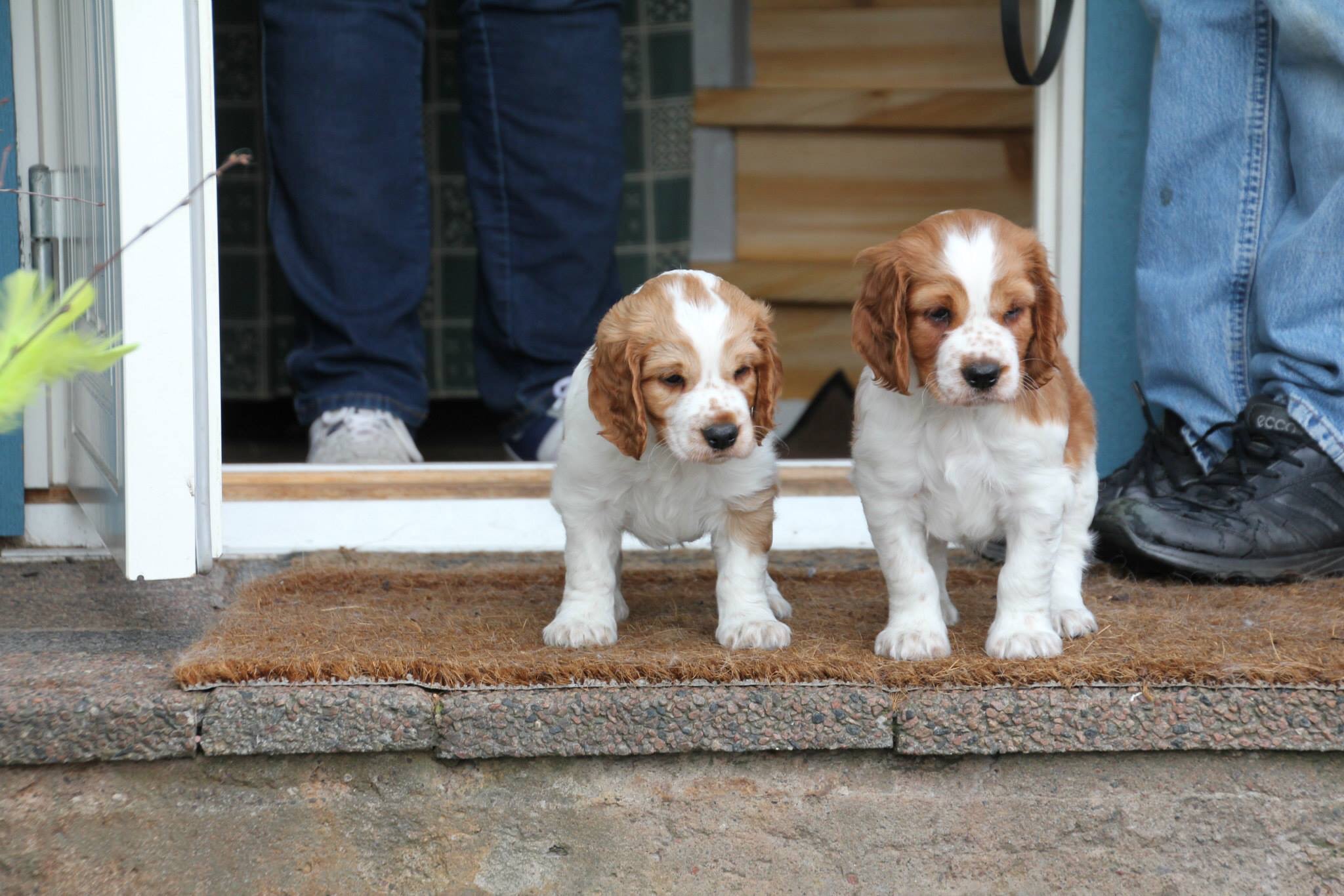 Lika glad blev hon att få komma hem till valparna igen. Valparna som bara blir sötare och sötare för varje dag. Idag mötte de oss på trappan och följde med ut i trädgården en stund.