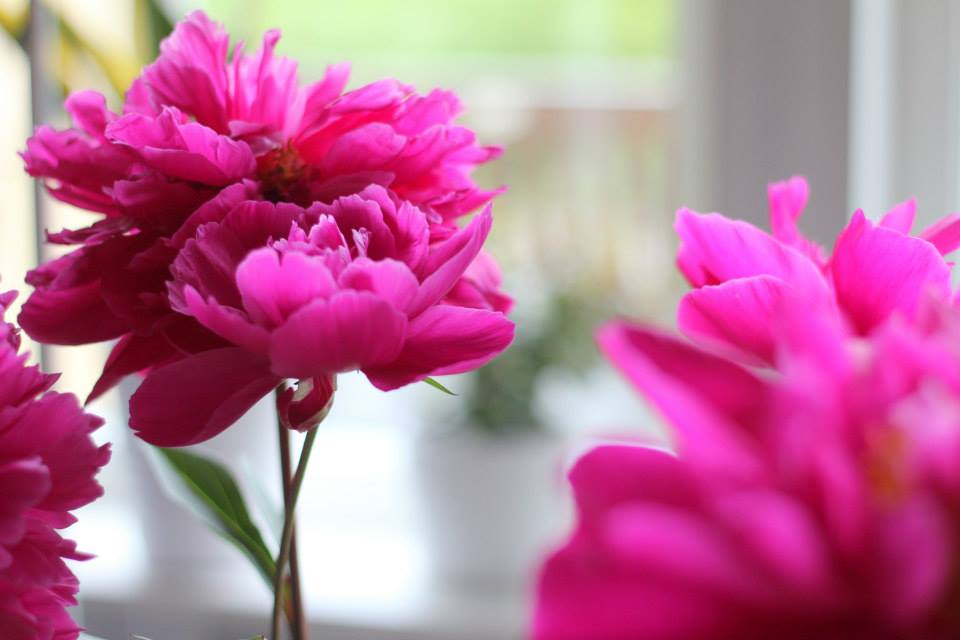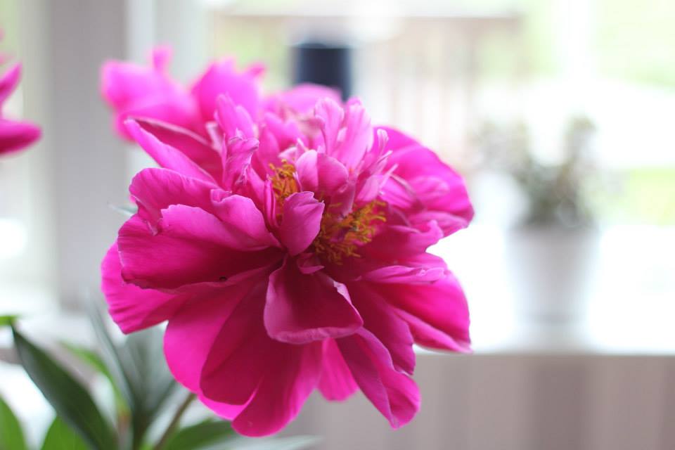 I en avskild (och vildvuxen) del av trädgården har jag en pionbuske med fantastiskt vackra pioner. Varje år kommer jag på att jag borde ta in dem och njuta av dem istället. Problemet är att jag kommer på det alldeles för sent och när de nästan blommat över .