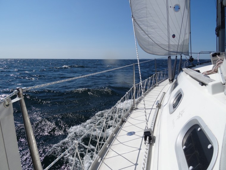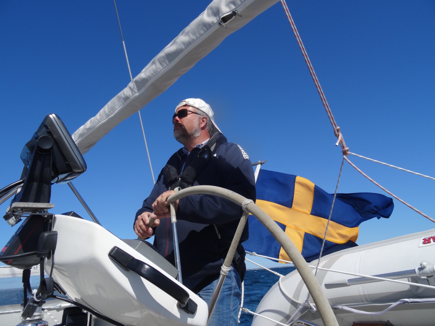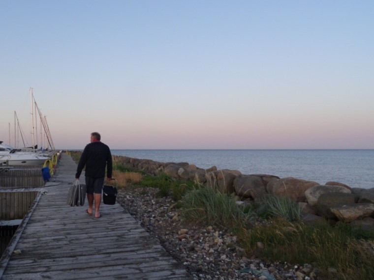 Vi vinkade av mellandottern och hennes sambo på stationen i Skagen. De tog färjan tillbaka till Sverige och vi styrde efter det söderut. Vi lade loss från Skagen vid halv tio och tre timmar senare var vi framme i Fredrikshamn. Det blåste mellan 8 och 12 (med toppar på 14) m/s och vi loggade över 8 knop i fart med bara genuan (förseglat). Riktigt fin segling var det.
