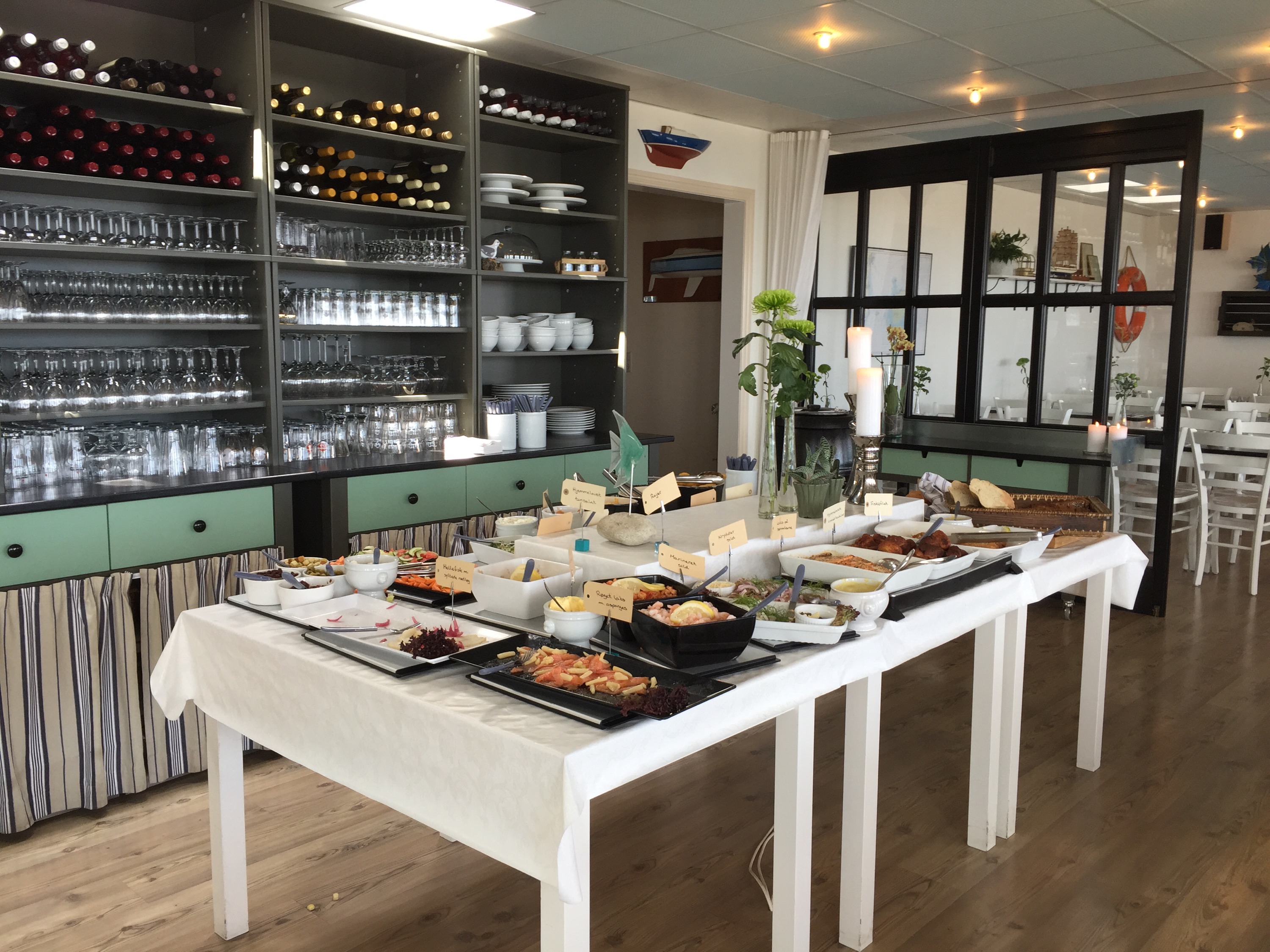 I hamnen finns en restaurang som har en mycket prisvärd grillbuffé som vi alla testade igår kväll. Maken och jag testade dessutom deras fiskbuffé till lunch idag och den var nog till och med aningen bättre.