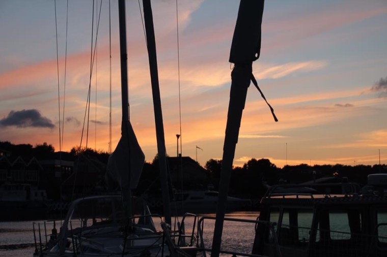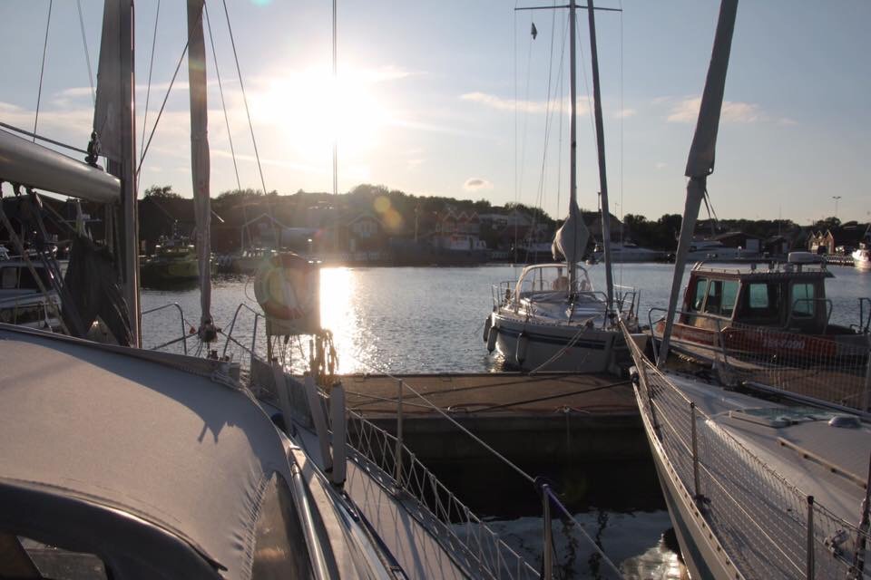 Vi hade siktet inställt på Läsö (Österby) men när det visade sig vara hyfsad sjö och fin segling styrde vi mot Sverige istället. Då dog vinden… Skvalpigt hav och många timmar senare lade vi till på Öckerö, i regn.