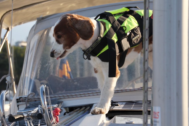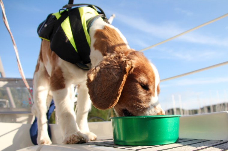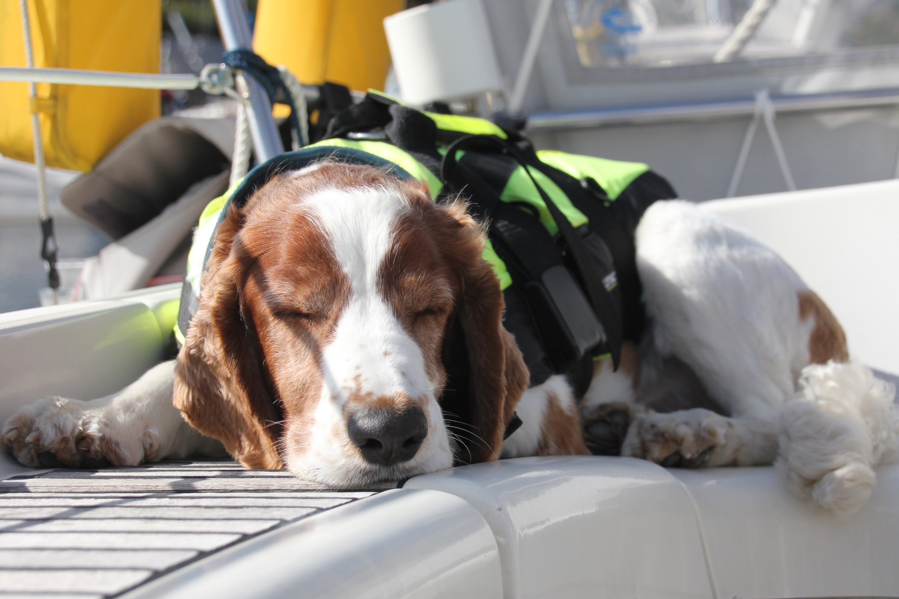 Just den här helgen har det blivit bryggsegling, även om vi troligtvis tar n liten tur för motor i eftermiddag. Det känns som att det är nästa steg nu. Han börjar röra sig rätt obehindrat på båten och har hittat sätt att ta sig upp och ner på olika ställen trots att det är halkigt. Trappan upp från ruffen tar han helt och hållet själv nu.