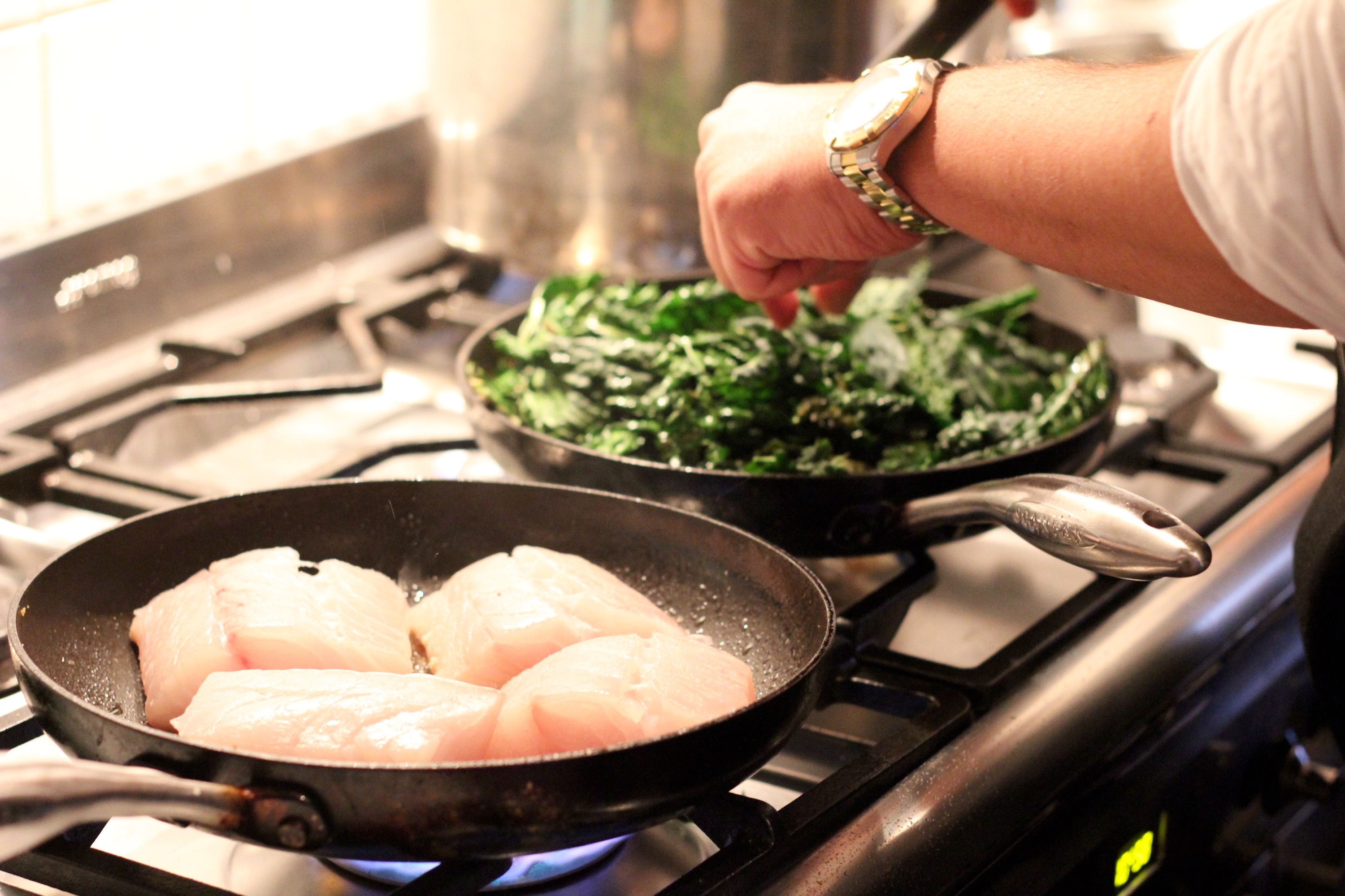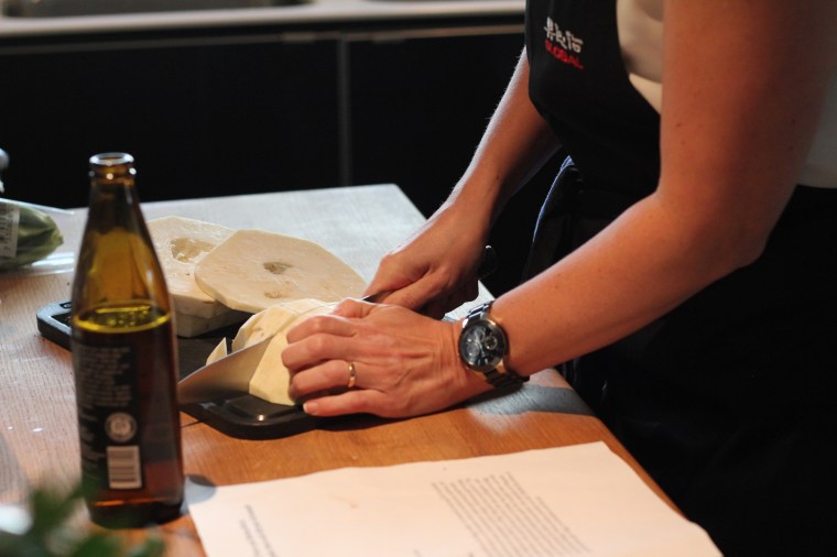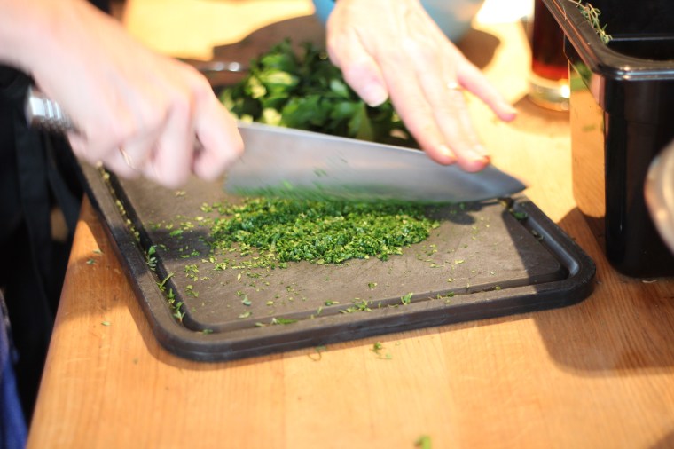 Vi delades in i tre lag, ett för förrätt, ett för varmrätten och ett för efterrätten, och fick sedan hjälp och instruktioner att laga respektive rätt. Så roligt och verkligen inspirerande. Tänk att jag kunde så mycket?!