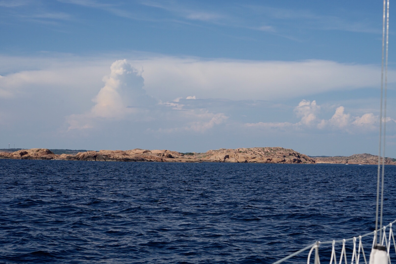Efter två veckor inomhus var det mycket skönt att komma ut. Tanken från makens sida var naturhamn och gärna då långsida men alla bra platser var upptagna så när åskstäd byggdes upp över land gick vi till Lysekil istället.