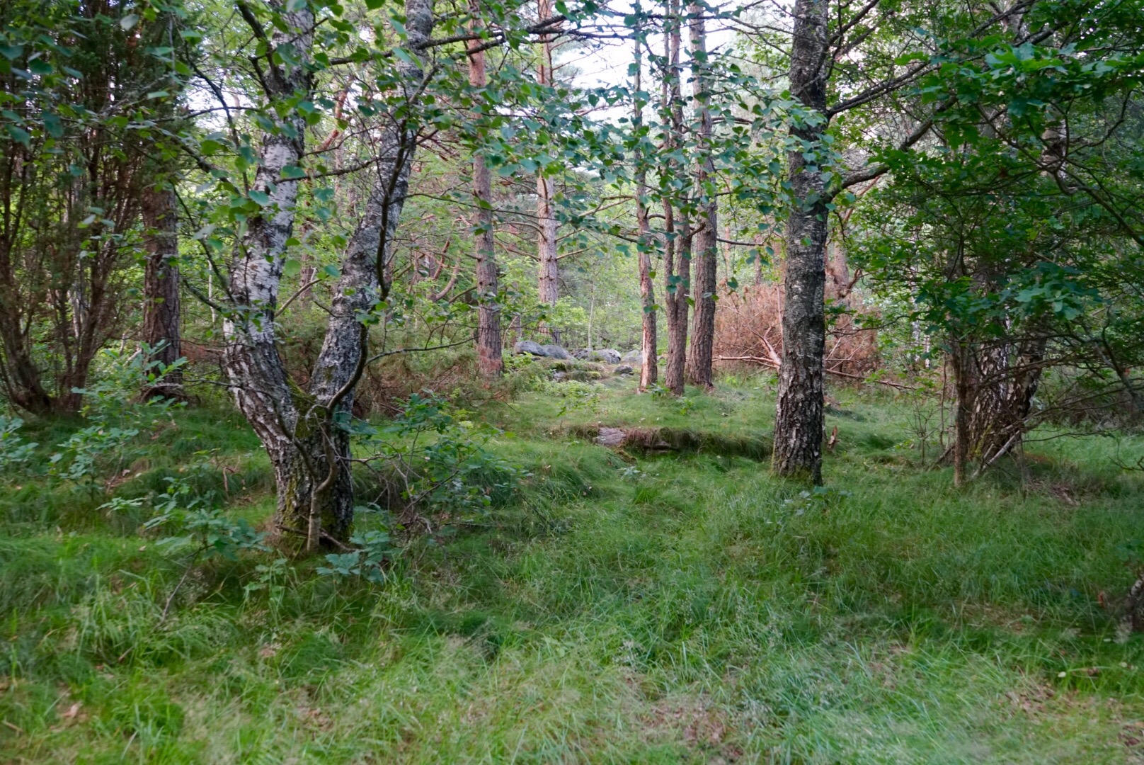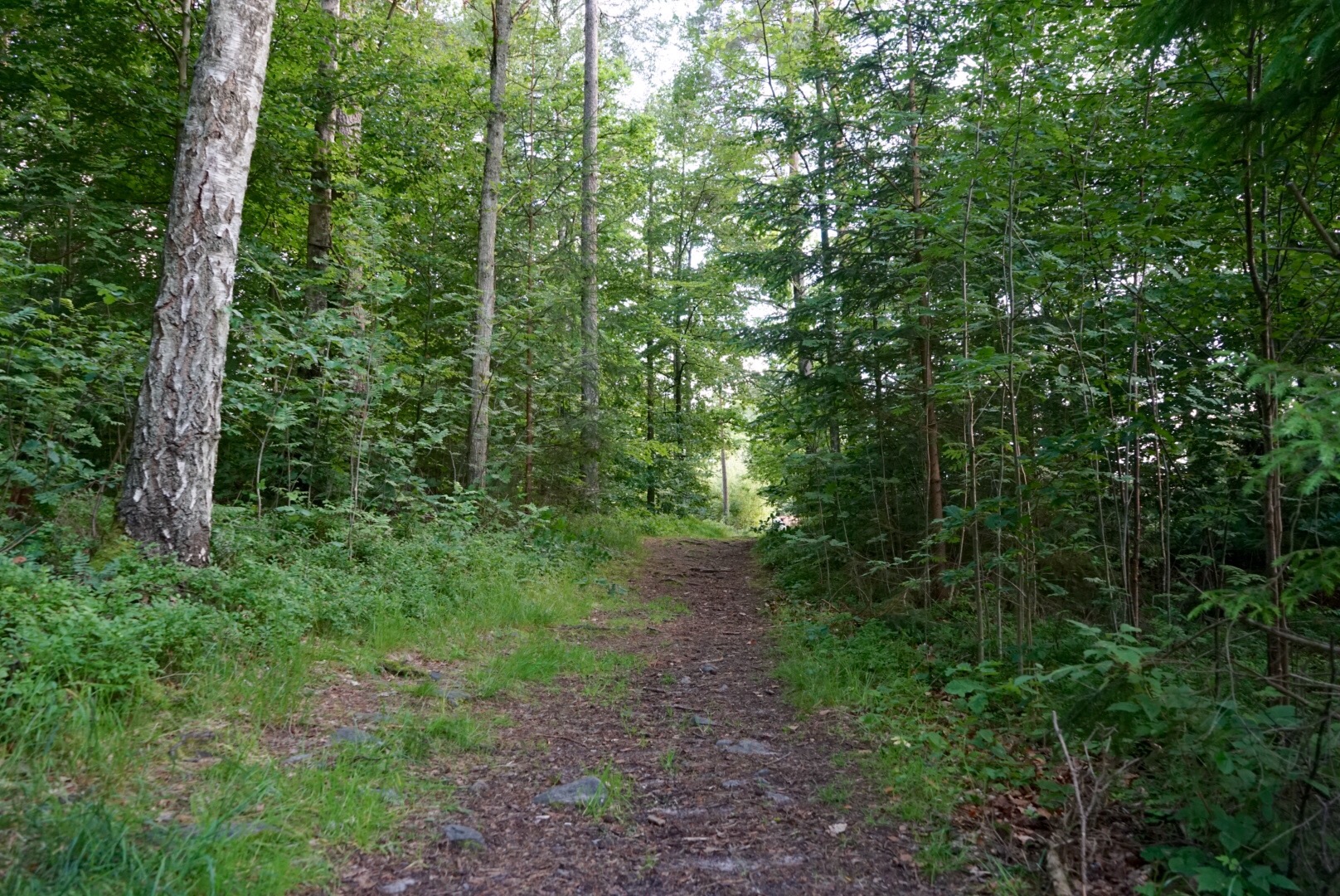Istället för att gå gångvägen som vi brukar, svängde vi vänster in i skogen. Philip och jag på promenaden.