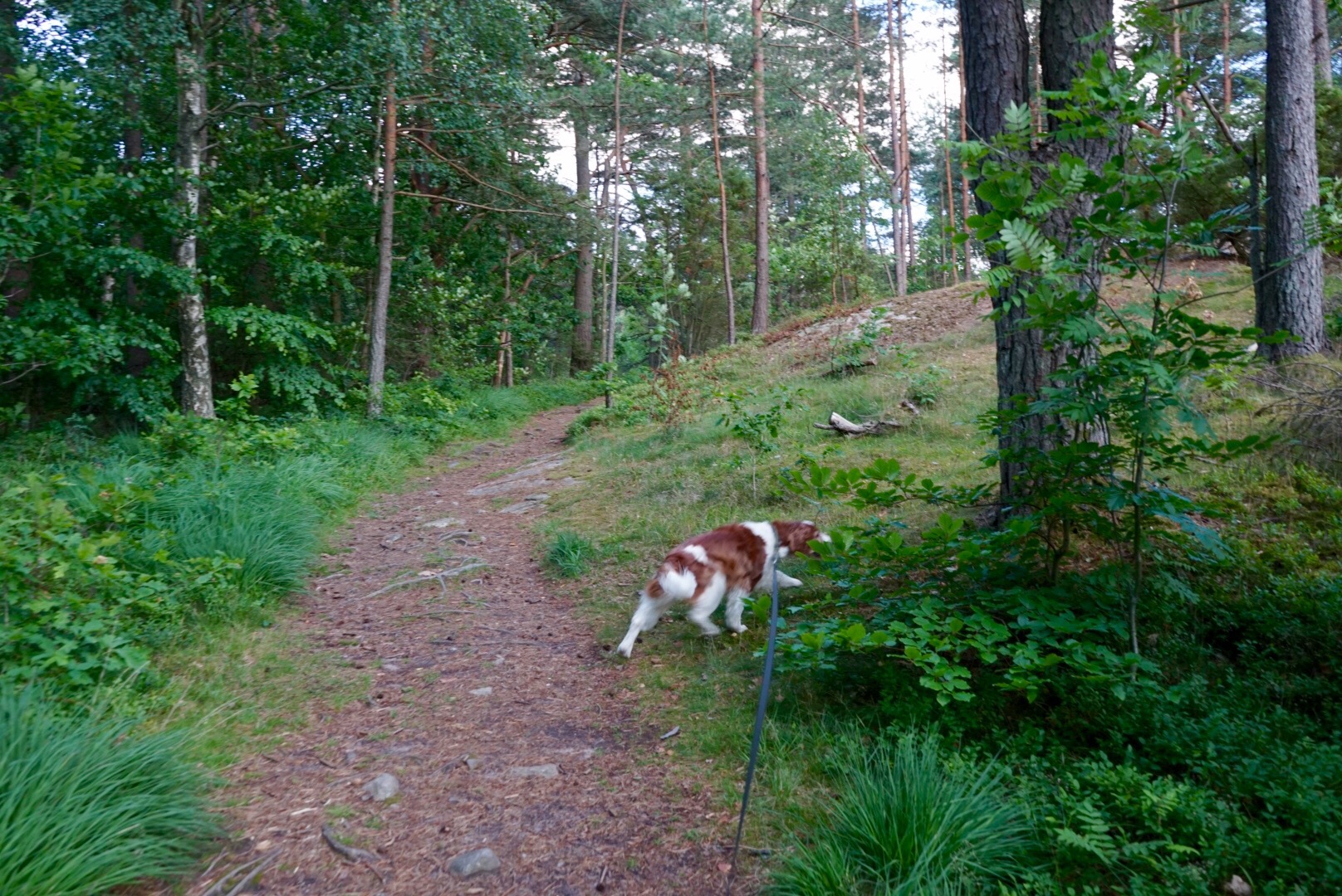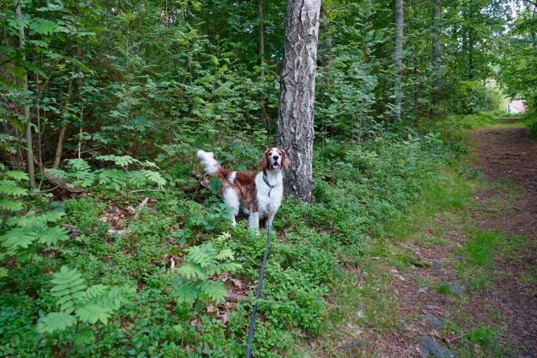 Över stock och sten och ständigt på jakt efter ekorrar.