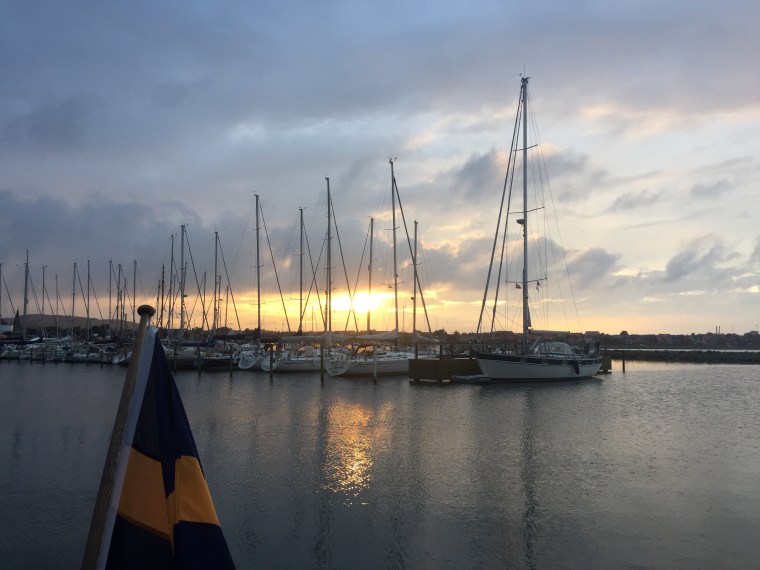 Så – halv två kastade vi loss och kunde styra mot Danmark. Massa timma försenade men ändå på väg.
