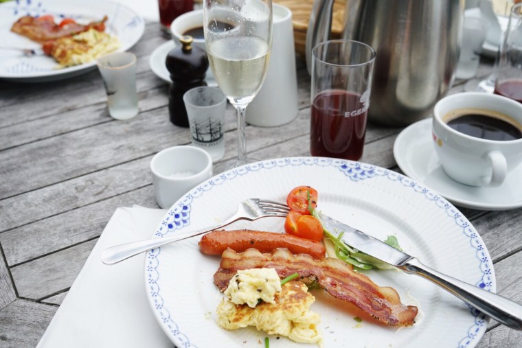 Vi bestämde oss redan igår för att vi skulle lyxa till torsdagen med brunch på Karins Køkken. Att den beskrevs som bobelbrunch och illustrerades av två champagneglas kan ha bidragit till beslutet så klart.