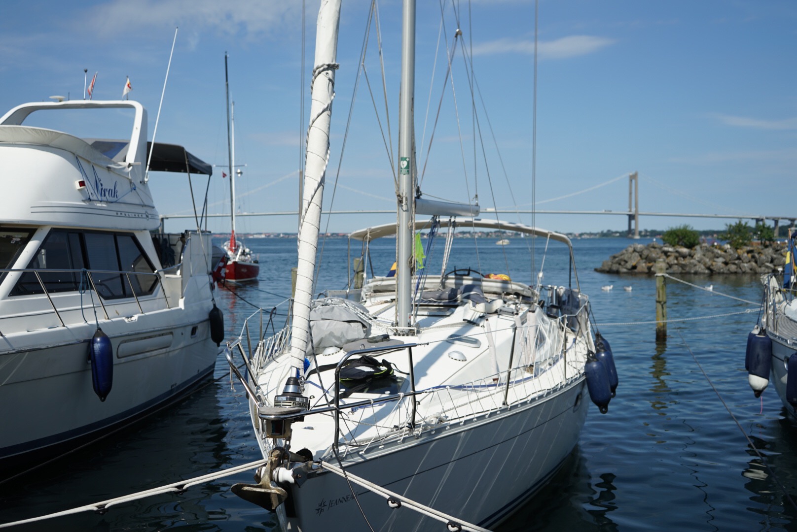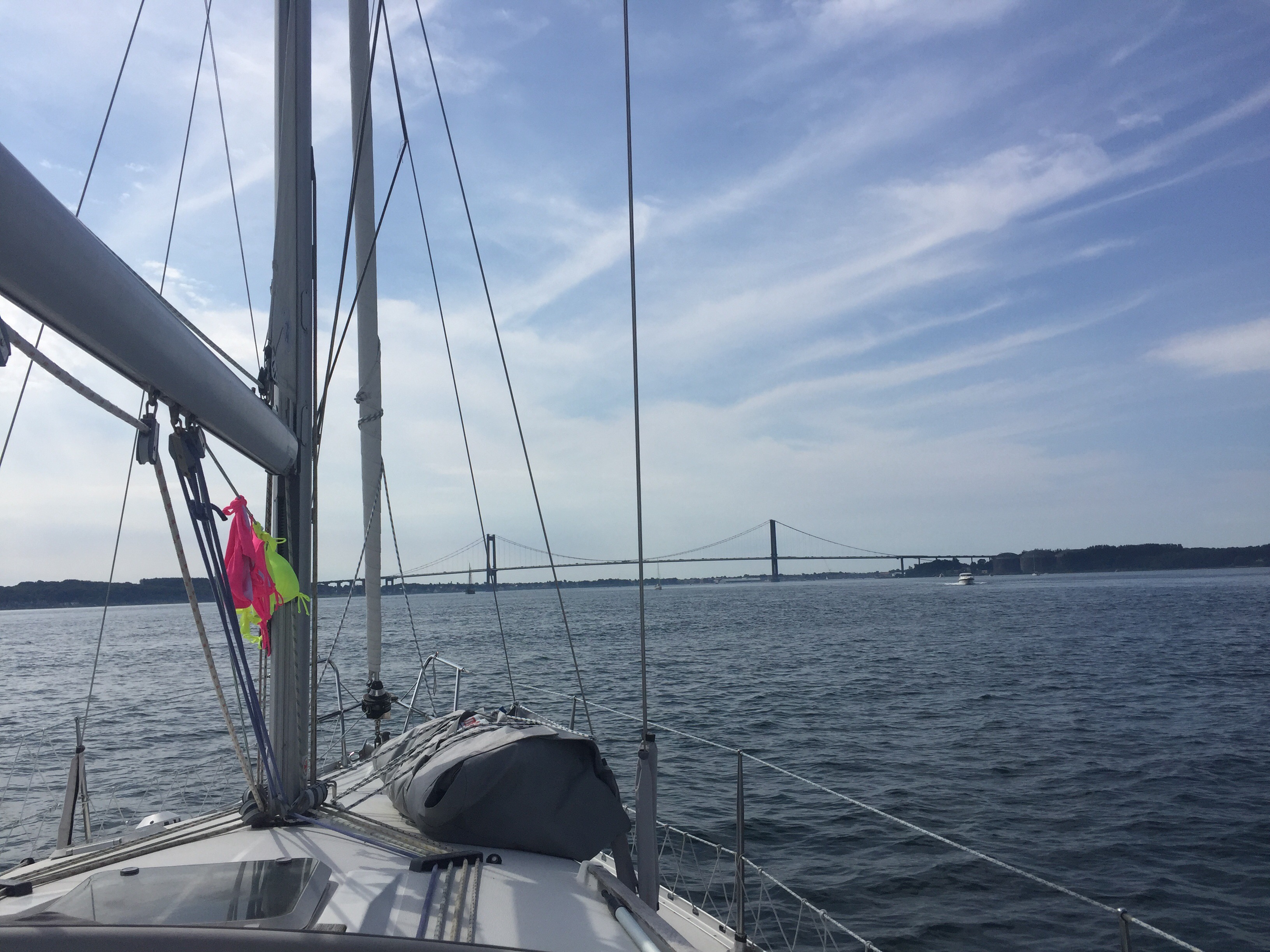 Nu ligger vi med utsikt mot bron och har blivit lovade en fin upplevelse när den tänds upp senare ikväll.