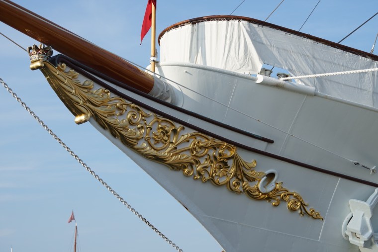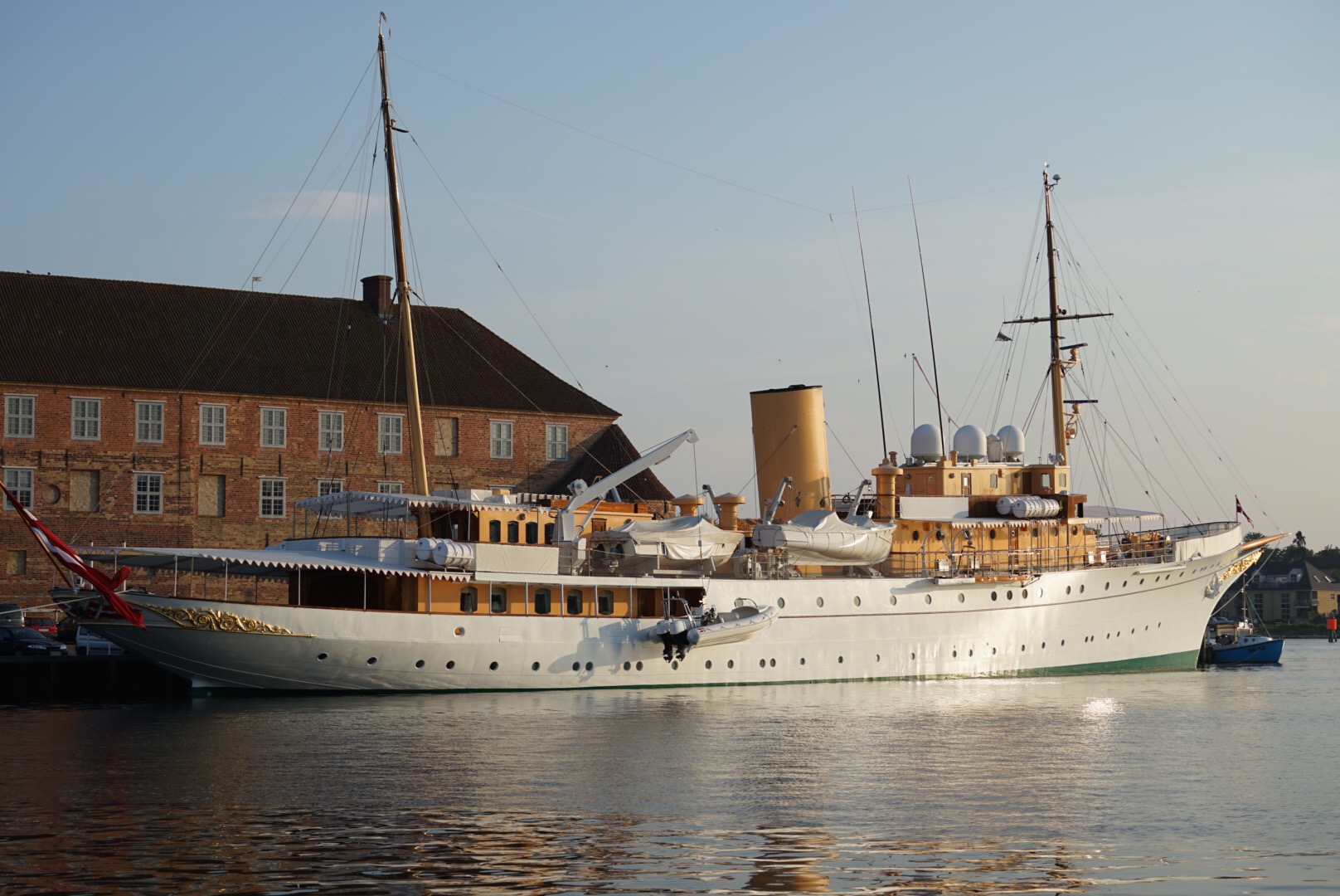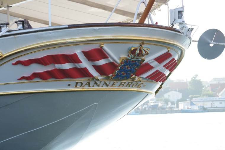 Platsen vi ligger på har fin utsikt över Sønderborgs slott där Dannebrog ligger förtöjd. Där snackar vi båt.