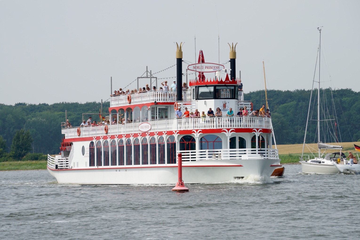 Det var varmt och disigt på vår väg till Kappeln och det var mängder med båt på väg norrut. Om jag förstår det hela rätt är det idag som den officiella semestern börjar i Tyskland så nu ska alla tyska båtar norrut.