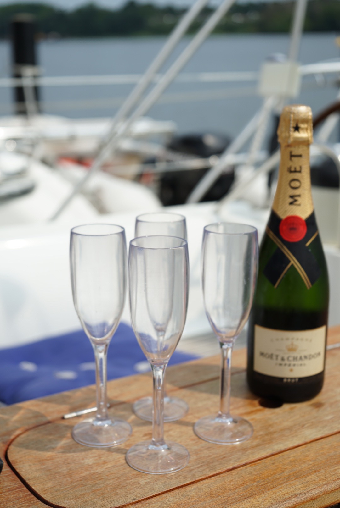 Nu har vi skålat i Champagne. Det är ju trots allt första gången på egen köl till Tyskland.