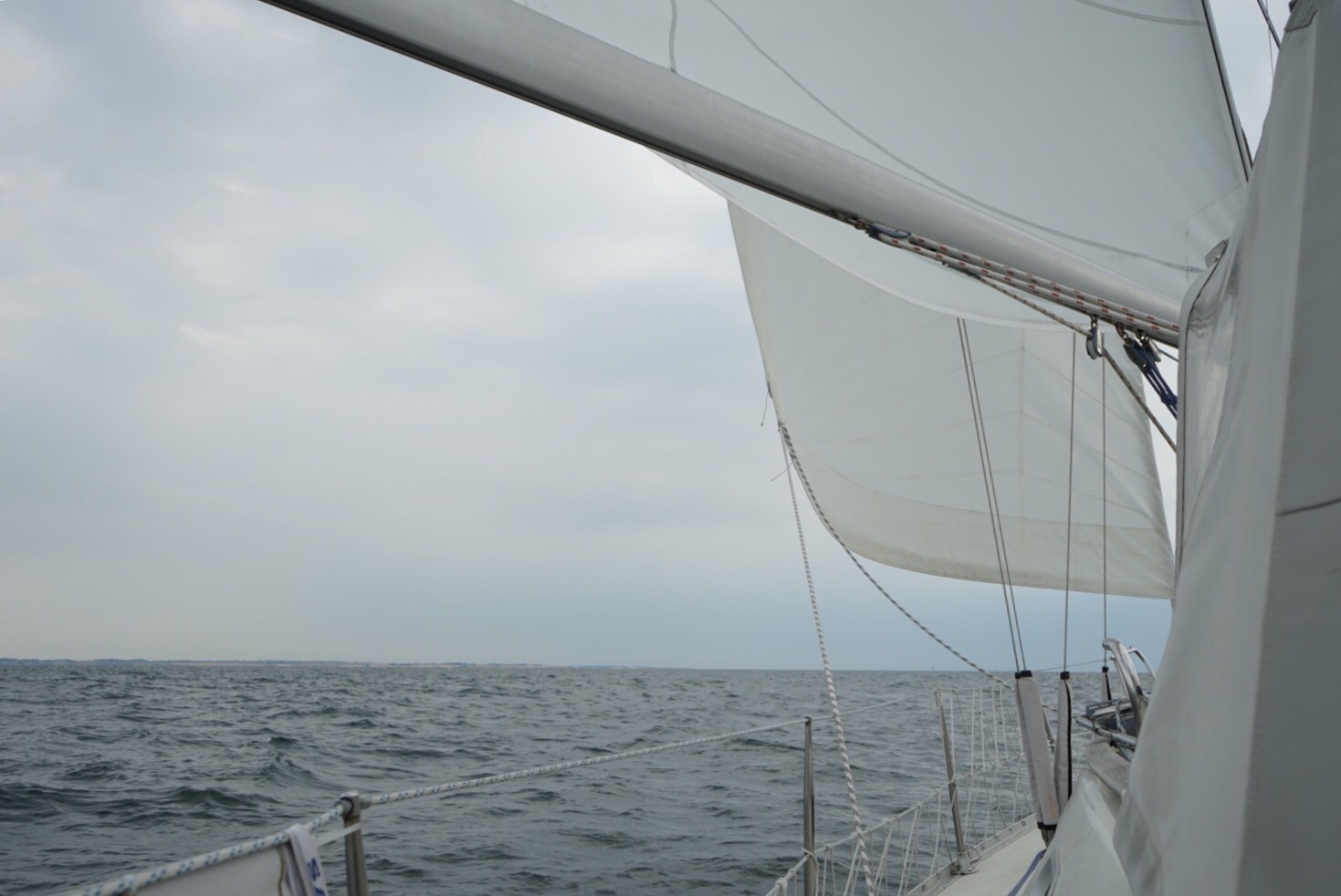 Det blev en nästan halvvind i mellan åtta och tio m/s och tyvärr lite grått väder.