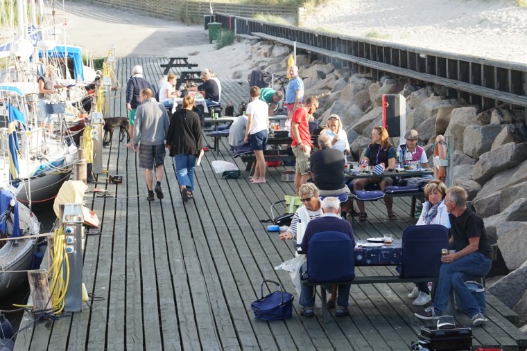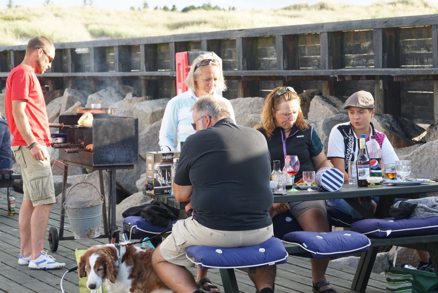 Det blev ett mycket trevligt återseende med grill och umgänge på bryggan. Vi hade planerat att äta ute idag men kompisbåtarna fixade mat så det räckte till oss också.