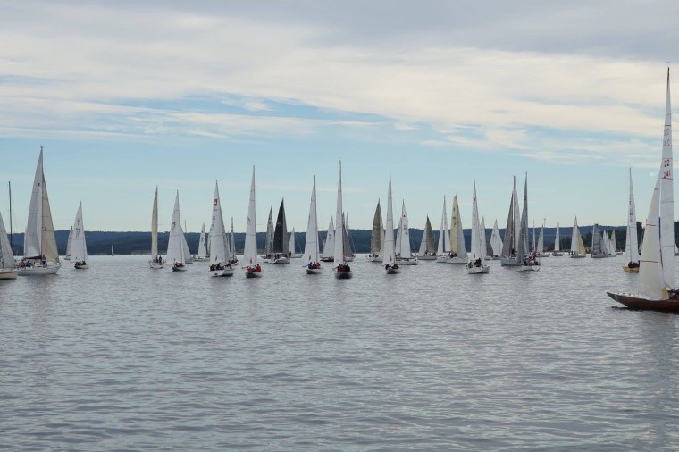 Redan klockan åtta var vi på plats för att hinna se de olika starterna. Många båtar är det och alla vill ha bästa platsen vid startlinjen.