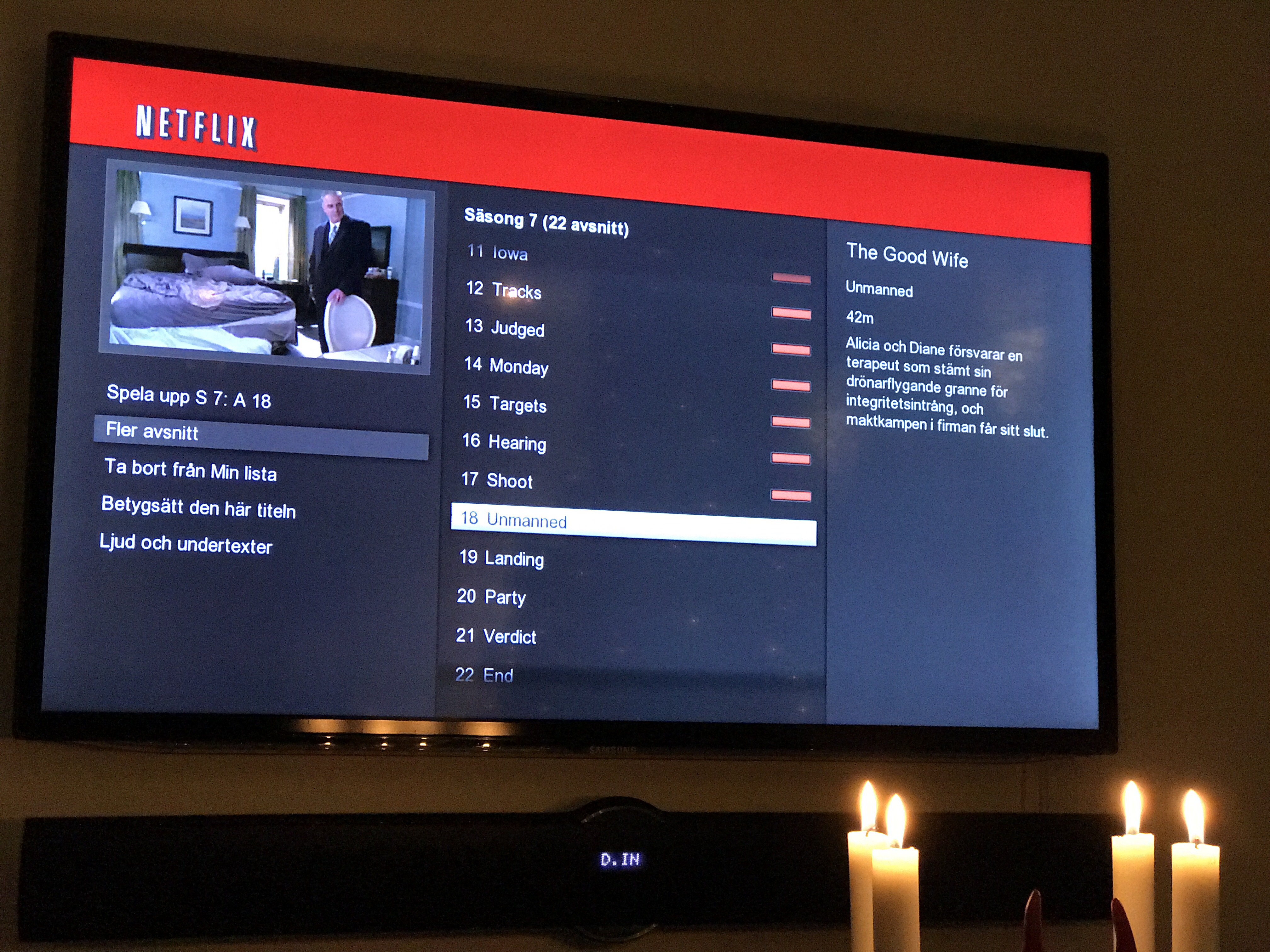The Good Wife Publicerat den 4 januari, 2017 av en lisa i livet Många lediga dagar och sena nätter senare har vi kommit till sista säsongen av serien The Good Wife. Riktigt bra om du undrar. Bara fem avsnitt kvar nu… Tyvärr lär vi inte hinna alla ikväll. Betygsätt detta:Gilla Laddar in … Relaterade
