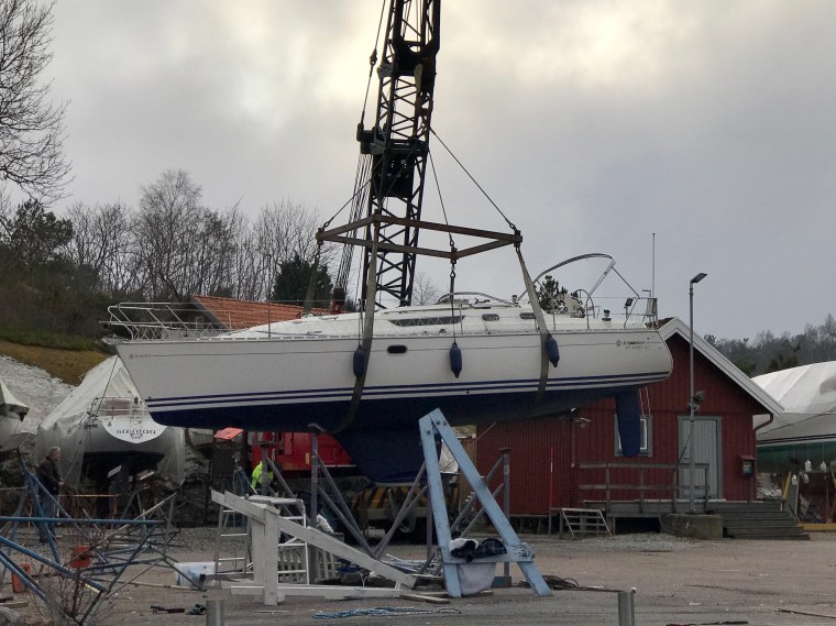 Sist ut var vår båt, Aquelina. Det där med när hon hänger och dinglar är väldigt nervöst. Vad som kan hända är väldigt uppenbart.