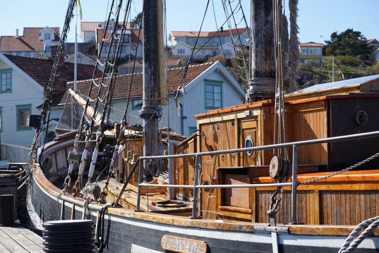 Vi lämnade Mollösund och styrde fortsatt norrut. Förbi Kråksundsgap Hälleviksstrand och Gullholmen.