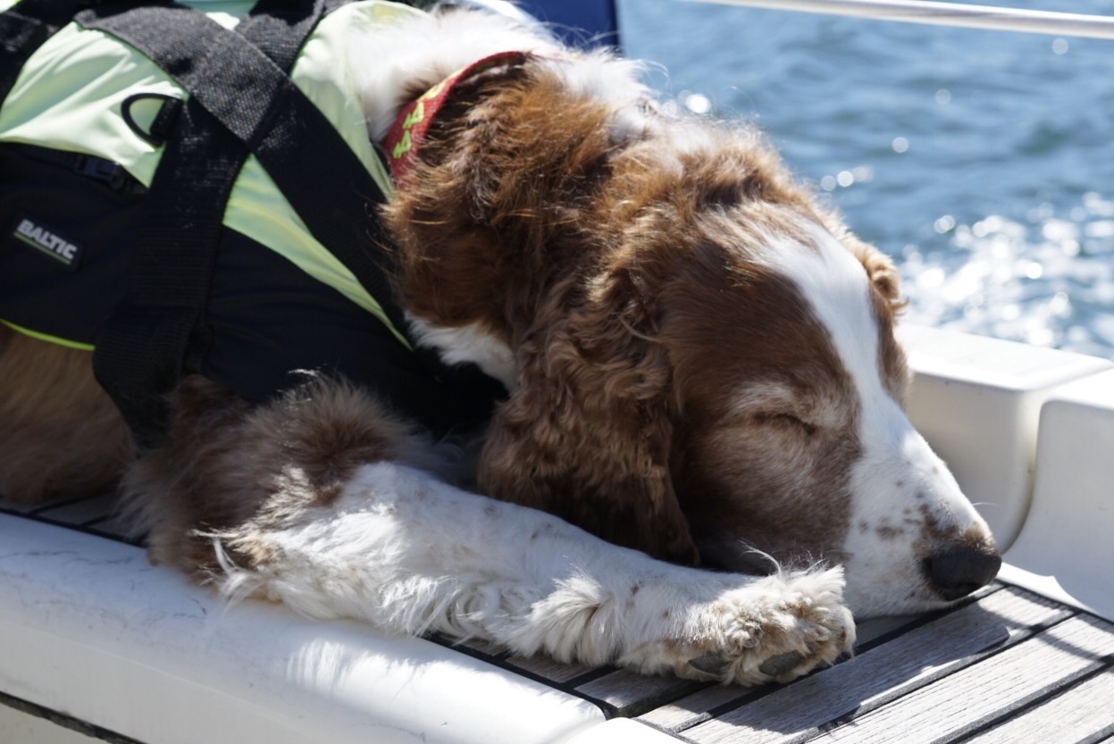 Det var kallt inatt. Närmare nollan faktiskt men ingen frös. Inte ens Philip som numera gladeligen sover i vårt nya sittbrunnstält. Det blev uppenbart förra sommaren att gillade att vara med på båten men INTE att sova nere i båten. Vad gör hans snälla ägare då? Jo, de ordnar med ett jättefint sittbrunnstält som gör att han kan sova där istället.