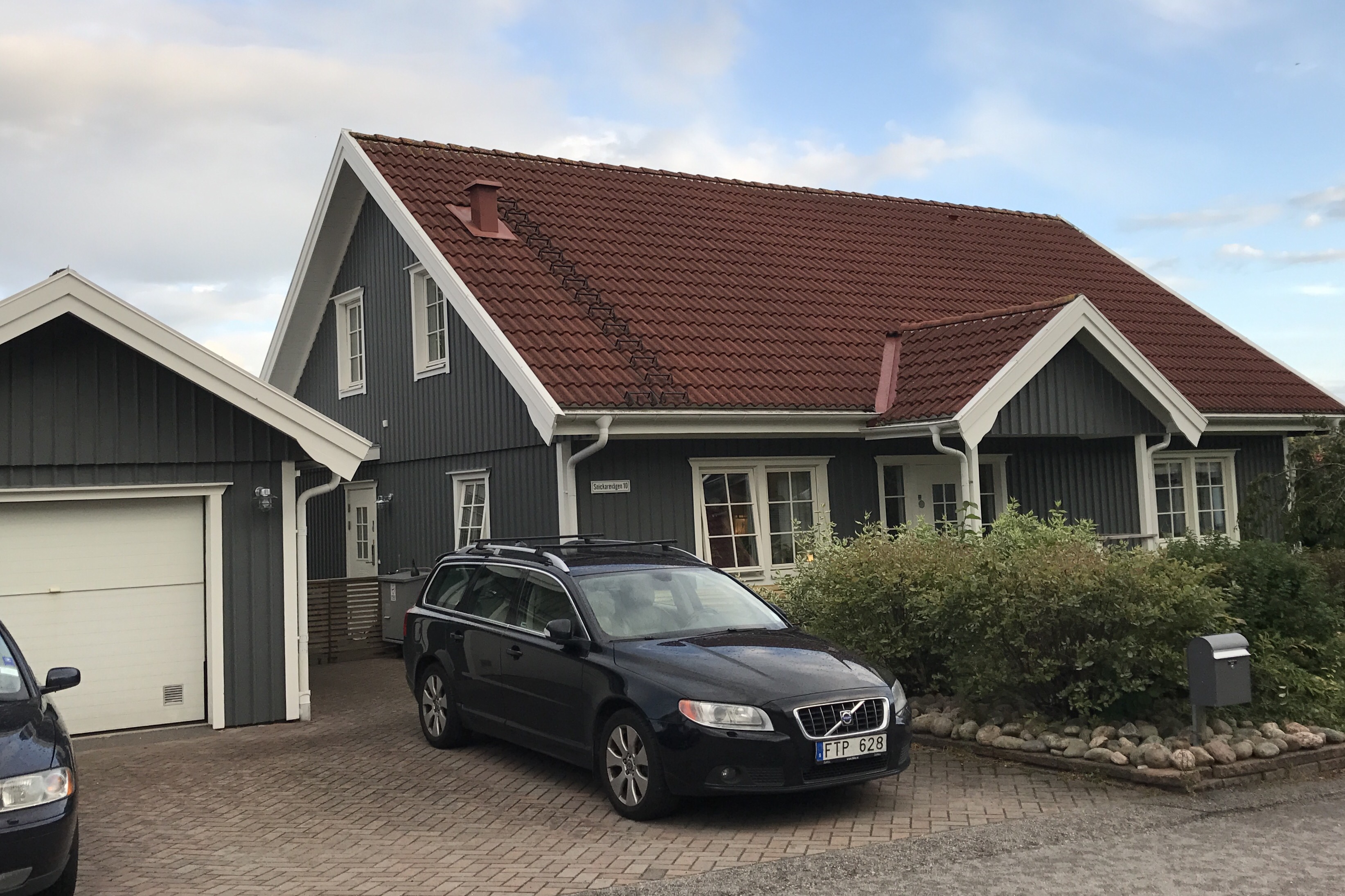 Äntligen kom den. Skylten som var det sista som skulle upp på fasaden efter ommålningen av huset. Den som till slut blev en vit skylt med gatuadressen i grå text.