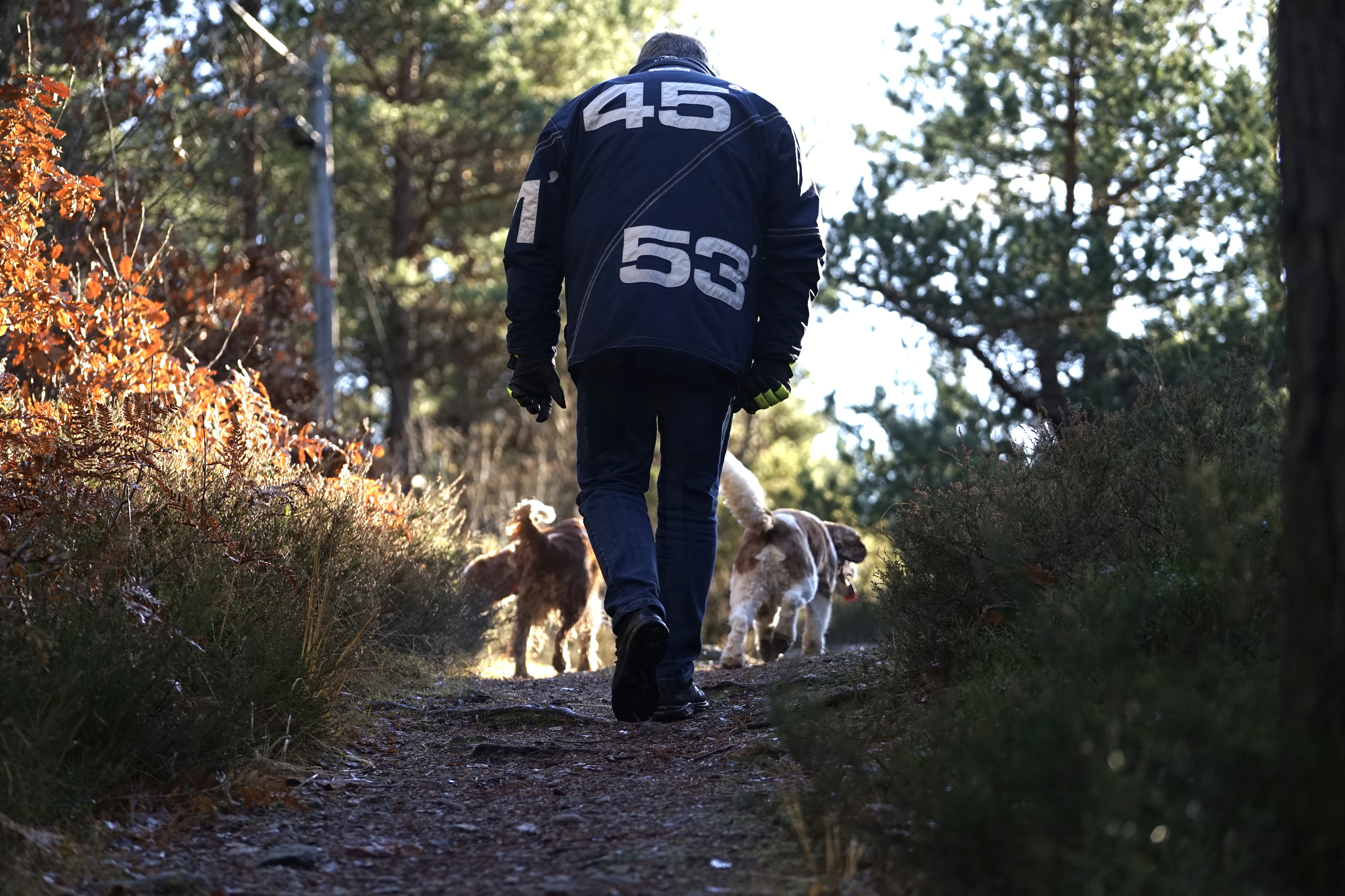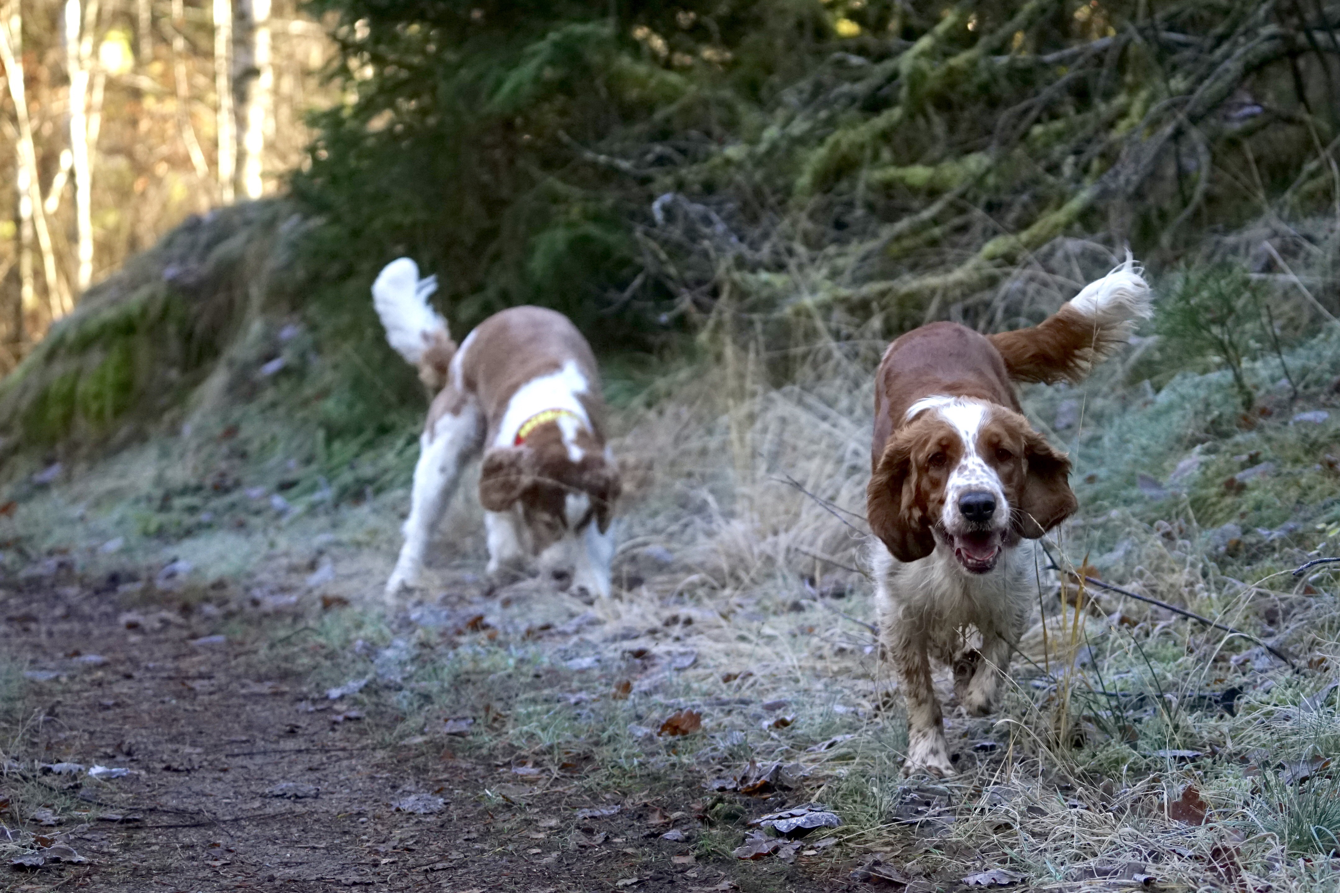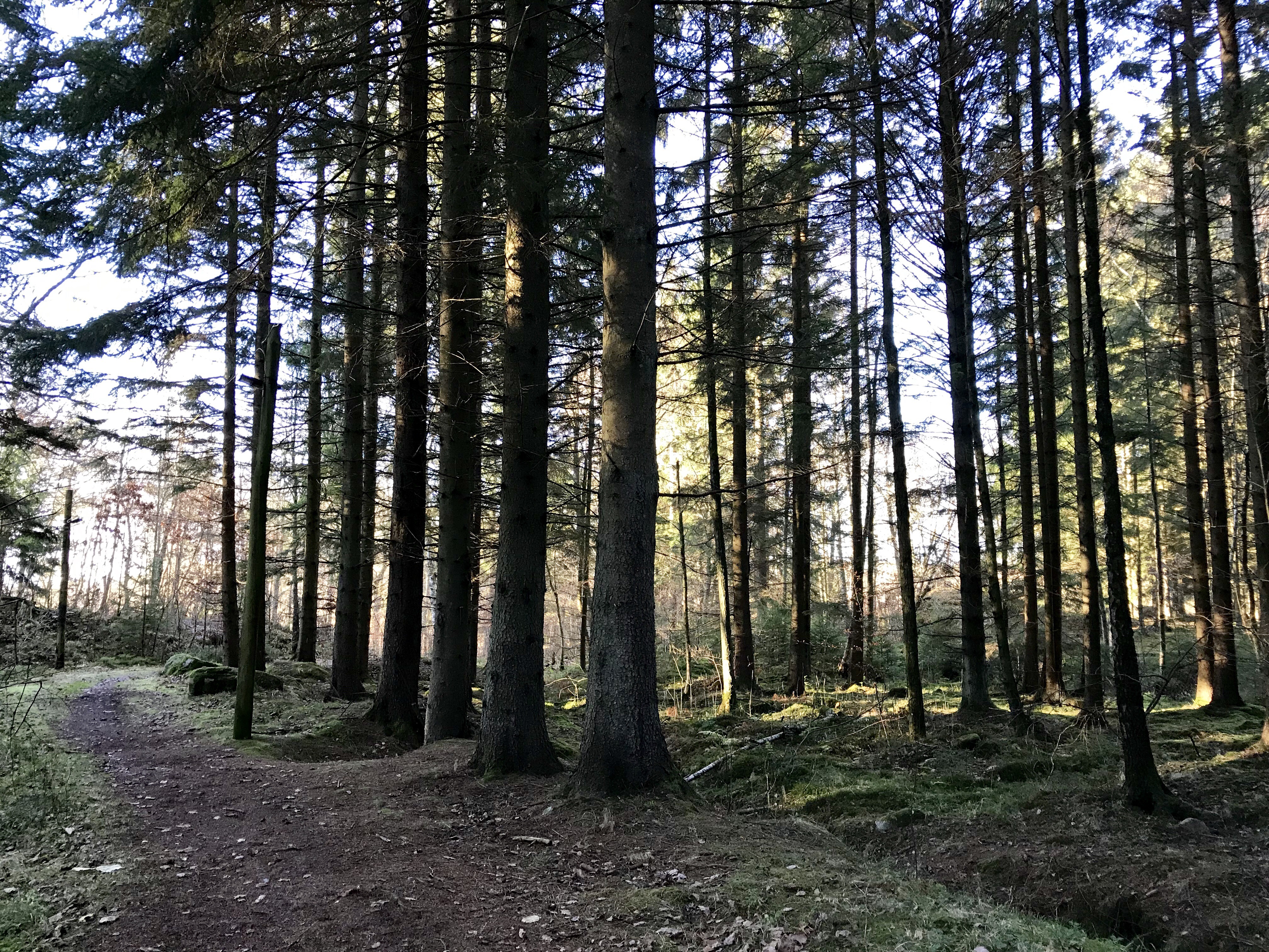 Söndag och sol och inget planerat. Då är en skogspromenad en riktigt bra idé. De två rödvita snurrskallarna var helt med på noterna.