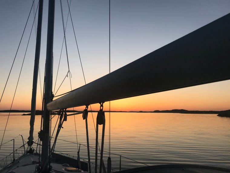 Med det väder som nu utlovats kunde vi bara inte låta bli. Tids nog regnar det och blåser på tvären så efter jobbet lade vi loss och nu ligger vi på svaj innanför Kråksundsgap. Vi har finfin utsikt åt Edshultshall på vår ena sida och österut på andra sidan.