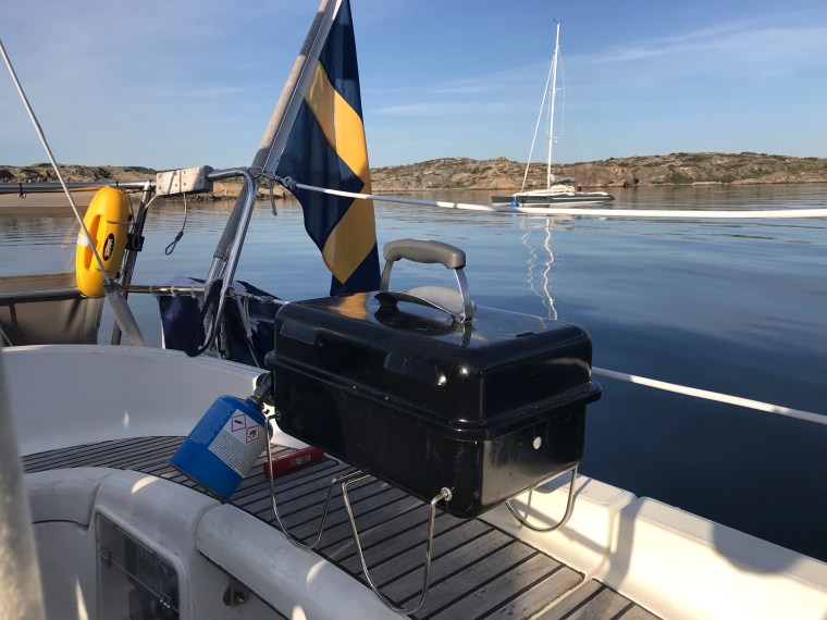 Matmässigt går det extremt sällan någon nöd på oss och inte heller idag behövde vi svälta. Gasolgrill fixade middagen och lite bubbel är aldrig fel i väntan på att maten blir klar.