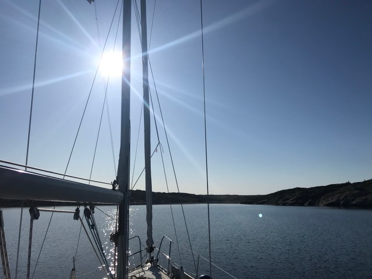 För en vecka sedan vaknade vi i ett fullt Skagen hamn. Idag vaknar vi på svaj, alldeles ensamma i den bohuslänska skärgården. Kontrasterna är stora men det är också tjusningen med det hela.