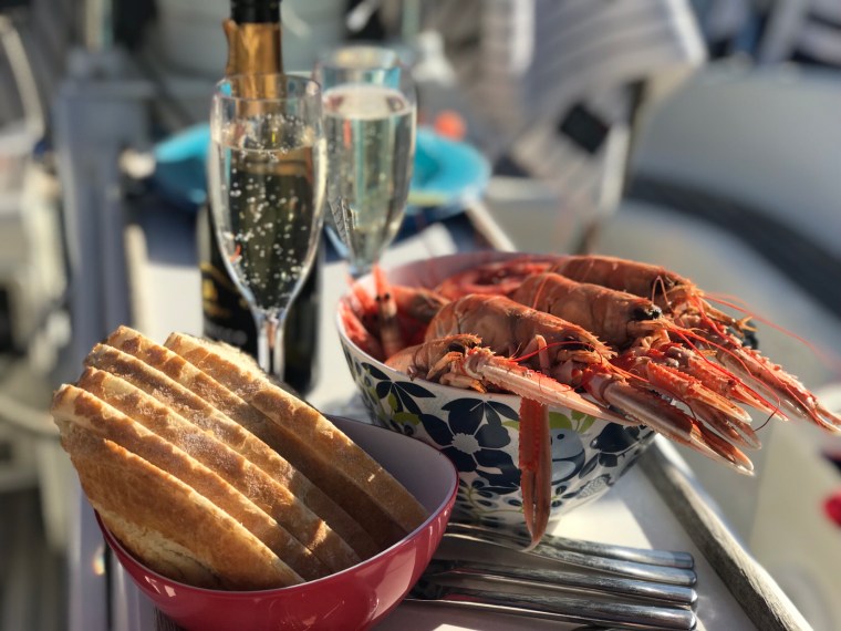 Vi köpte räkor och visste att det fanns dryck i kylen. Ja, några burkräftor blev det också. Sade jag bubbel också?