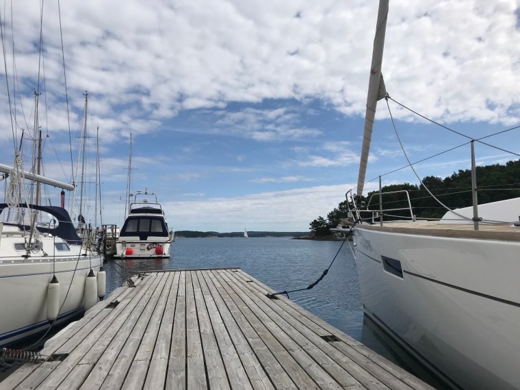 Systeryster och jag sov länge och efter morgondopp och frukost i sittbrunnen packade vi ihop våra grejer och lämnade båten för den här gången.