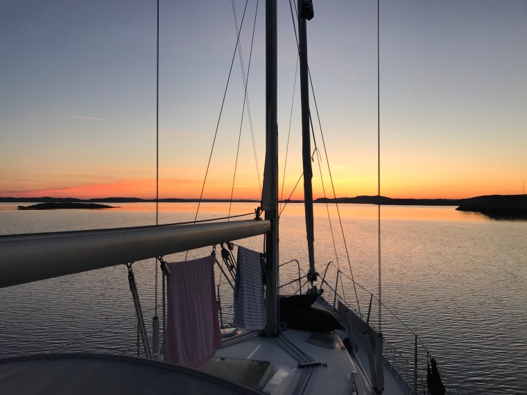 Men för att komma till saken… Vi lämnade hamn vid fem och gick till Mollösund. Hundarna fick gå en sväng i land och vi började plocka upp maten när vi plötsligt ångrade oss. Vi hade inte alls lust att ligga i någon hamn. Nej, vi ville ligga på svaj. Vi lade loss och hamnade innanför Kråksundsgap.