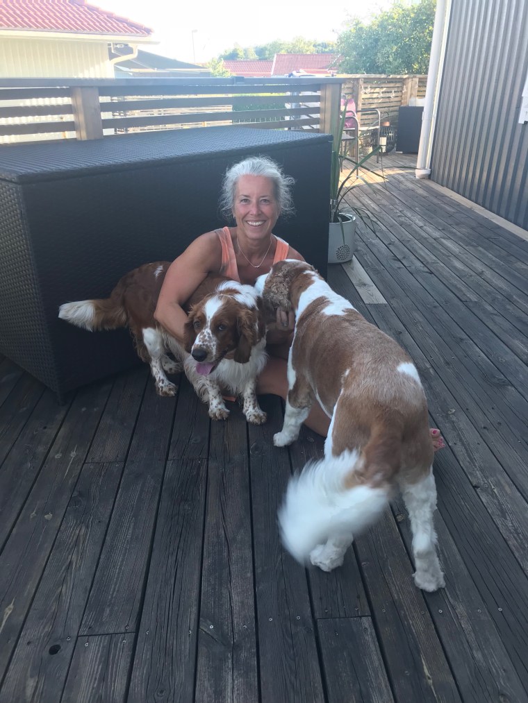I början visste vi inte om vi vågade tro att hon var dräktig men nu är det verkligen ingen tvekan. Hon äter som en häst, rör sig som en drottning och är liksom mer inåtvänd. Och så har hon blivit rund som en tunna med tuttar som nästan når ner till marken. Ok, jag överdriver lite men dräktig är hon och jag tror till och med att jag kände valparna röra sig häromkvällen.