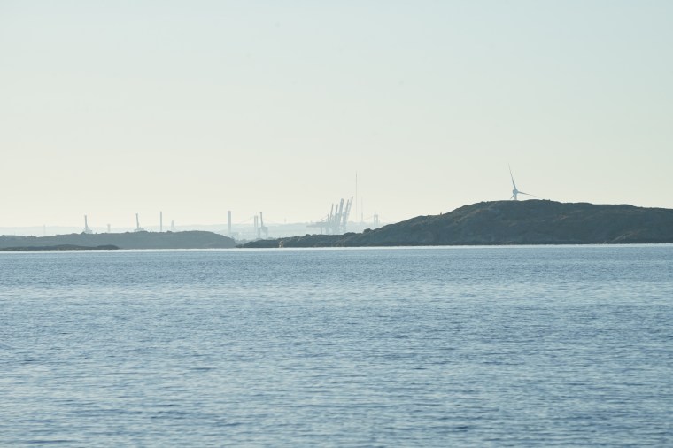 Redan när vi lämnade Grötö kl 05 märkte vi att det skulle bli en varm dag. Vi lät därför taket vara uppe och fick i och med det skugga under överfarten.