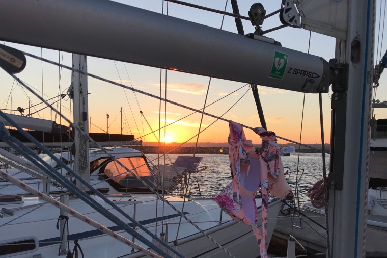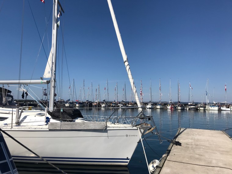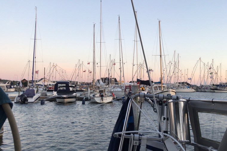 Nu är det dags att gå ner i båten. Här har blåst en del sedan fem-tiden och det viner en hel del i riggarna runtom. Prognosen säger att det ska mojna lite under natten men oss spelar det ingen större roll. Vi ligger bra och ska stanna ännu en dag.
