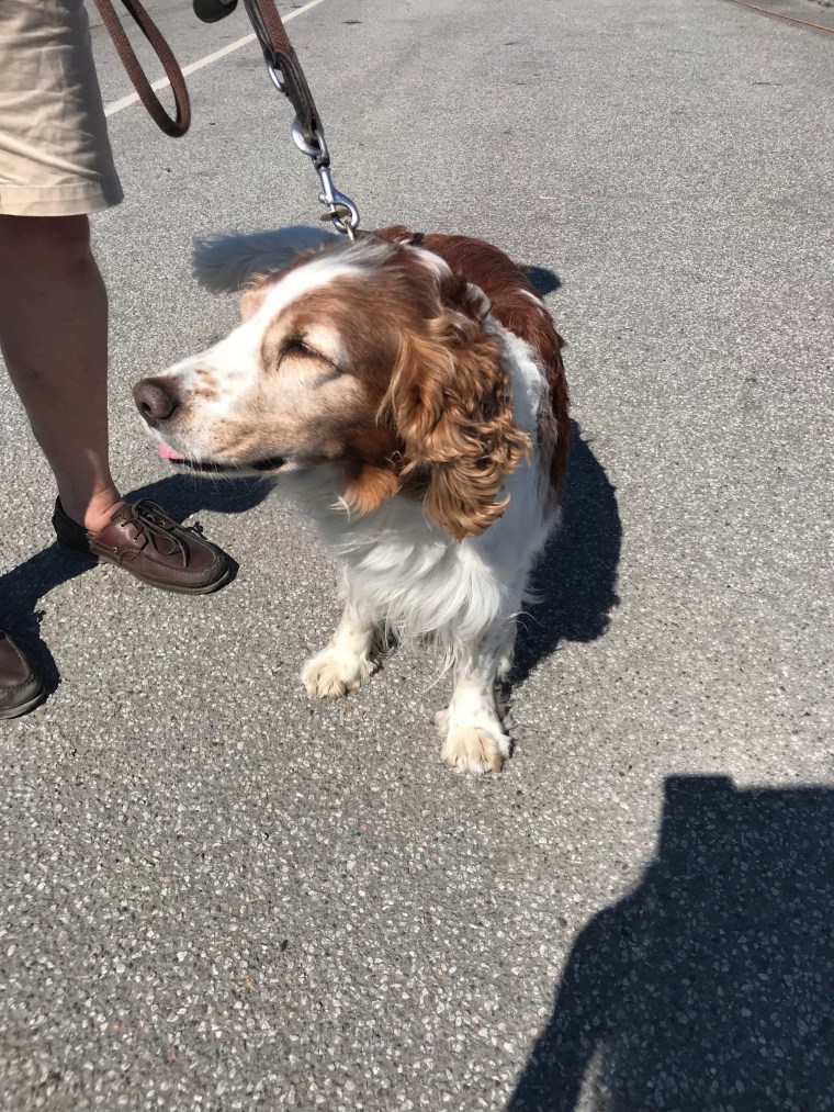 Jo – en fin welshfarbror sprang jag på. Hector 10 år. Han bor i Norge och är skeppsvovve på en av de 50 Nauticatar som ligger i Ebeltoft den här helgen.