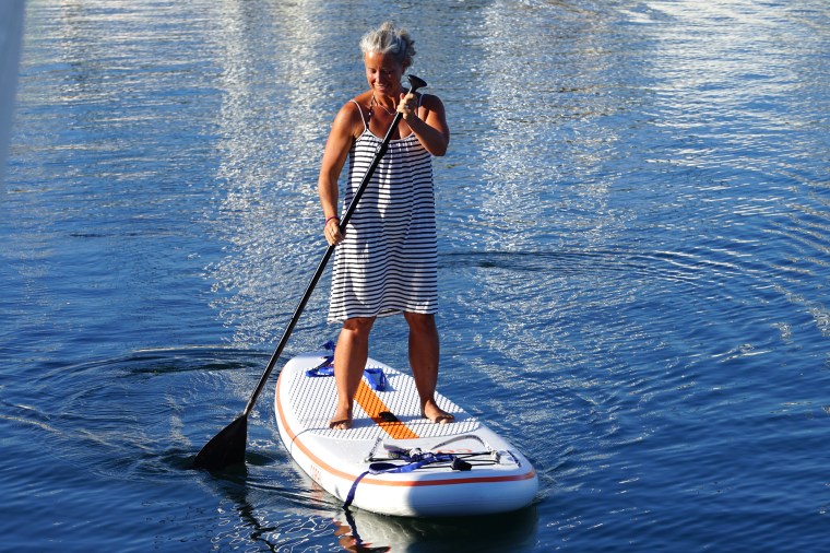 Jag fick chansen att prova SUP. Grannbåten hade en och när han förstått att jag aldrig testat men var nyfiken lånade han ut den. Syns det att jag gillar det?